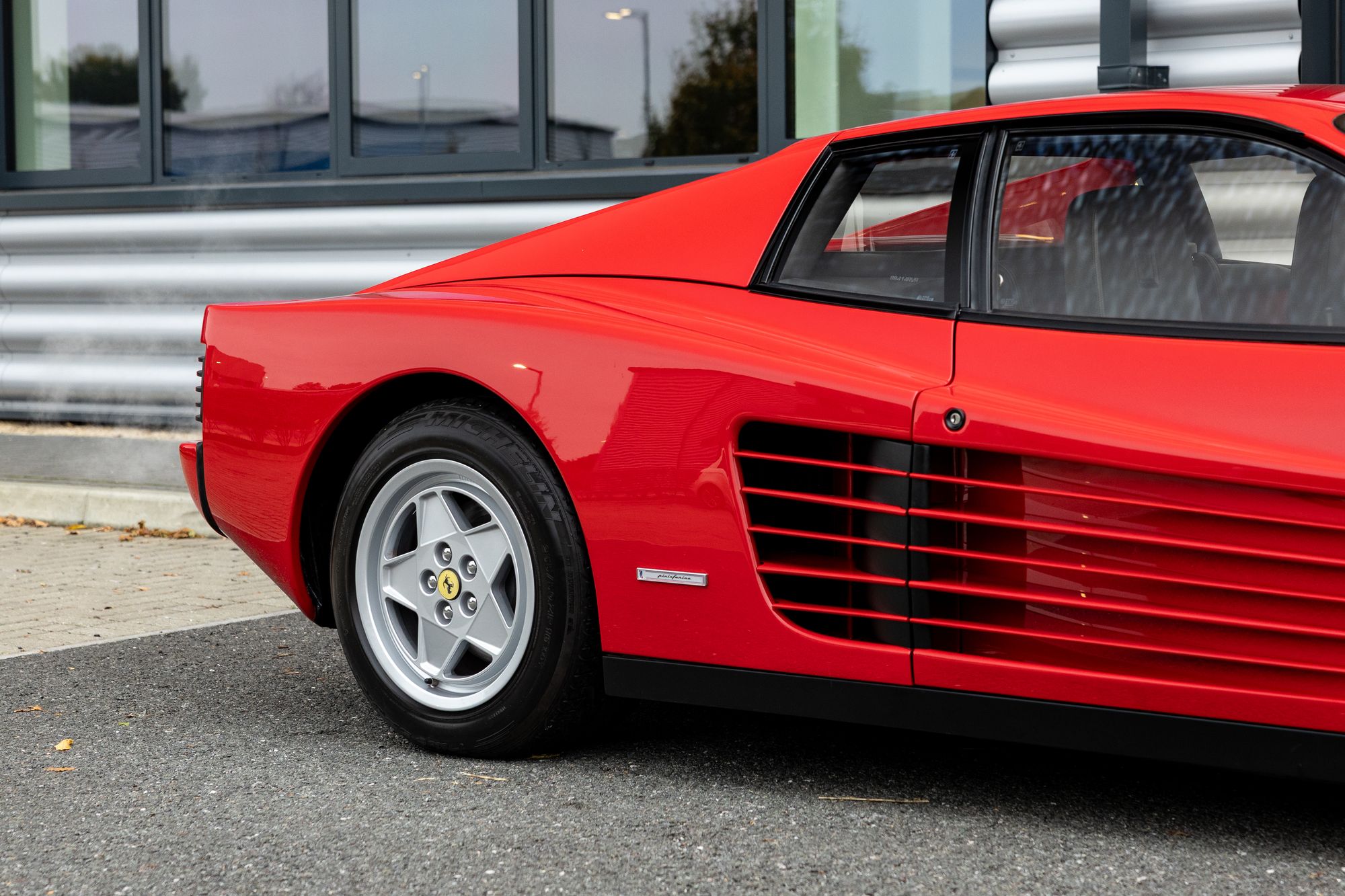 Designed to be larger than its predecessor, the extra space is used to accommodate luggage in both the front boot and behind the seats. Headroom is also increased, with a roofline half an inch taller than on the BB. Like its predecessor, the Testarossa uses double wishbone front and rear suspension. Ferrari improved traction by adding 10-inch-wide alloy rear wheels.