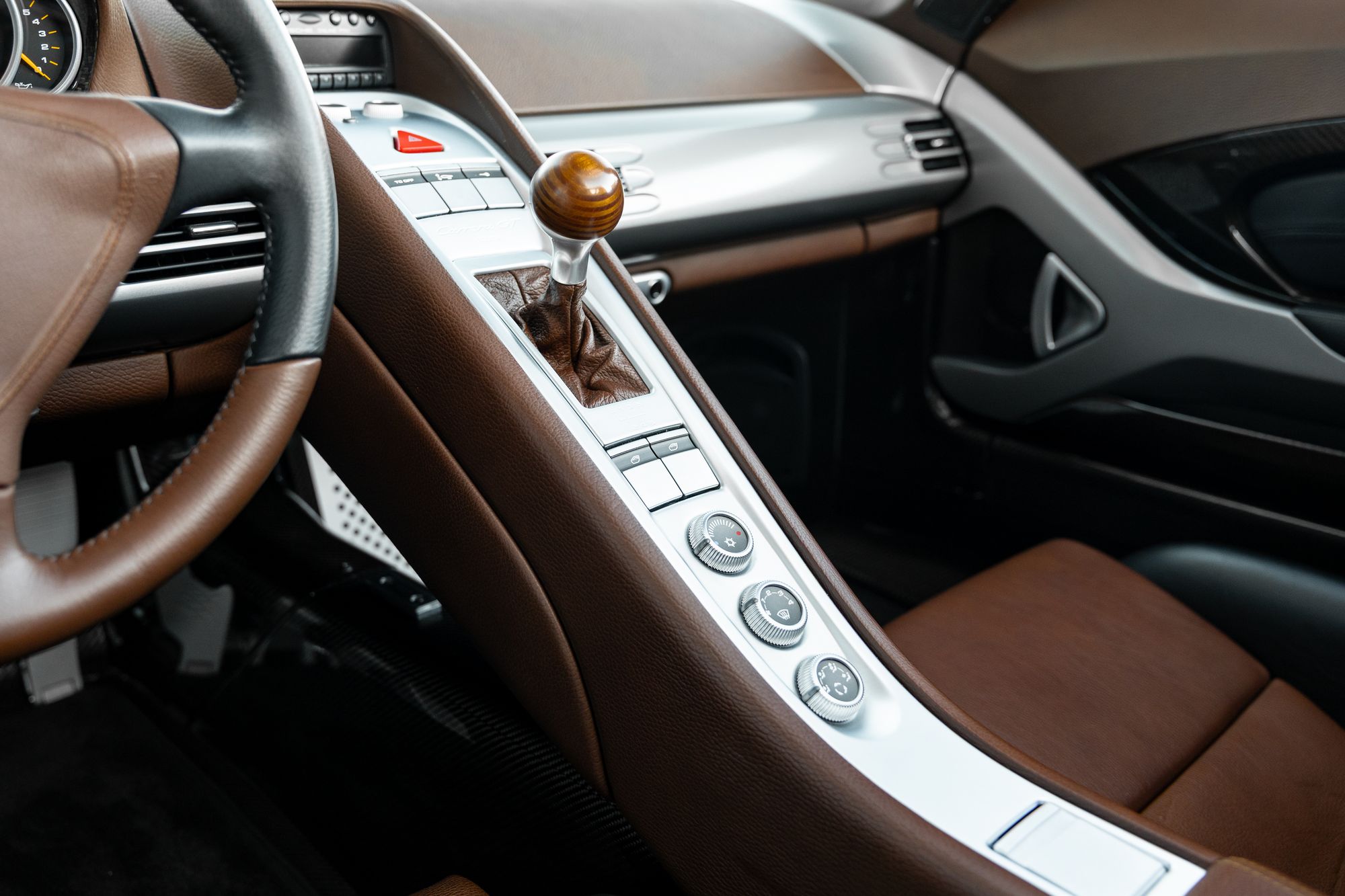 The car was initially intended to use a turbocharged flat-six engine, but was later redesigned with a 5.7-litre 603hp dry-sump V10; a unit built secretly by Porsche in 3.5-litre form for the Footwork Formula One team in 1992, which was shelved and resurrected for the Carrera GT. It features a closed deck construction with a 68-degree ‘V’ angle, variable valve timing and titanium conrods, and is paired with a six-speed manual gearbox with a Porsche ceramic composite clutch. As a result, the Carrera GT completes the 0-60mph sprint in 3.5 seconds, before hitting a top speed of 205mph.