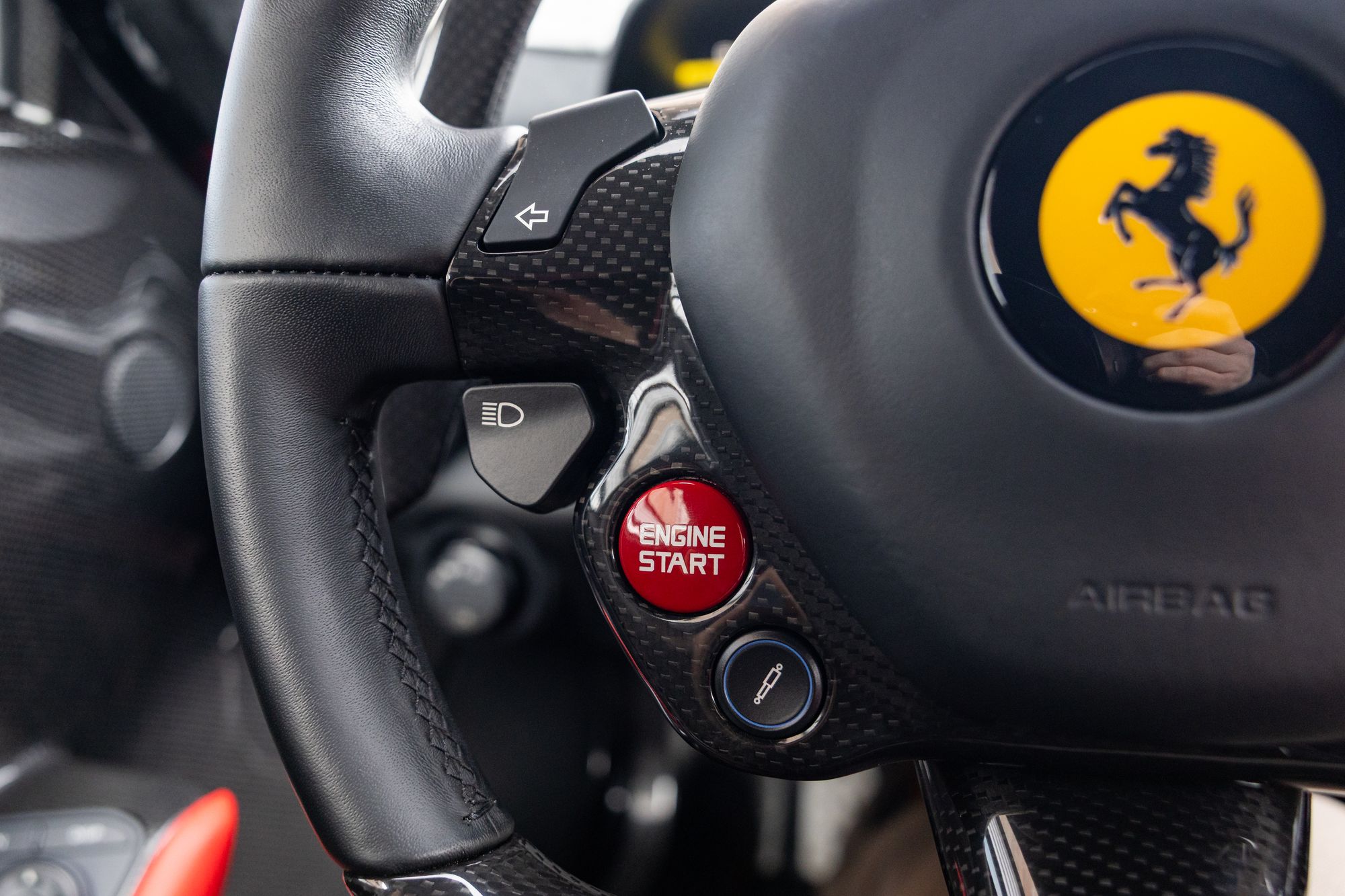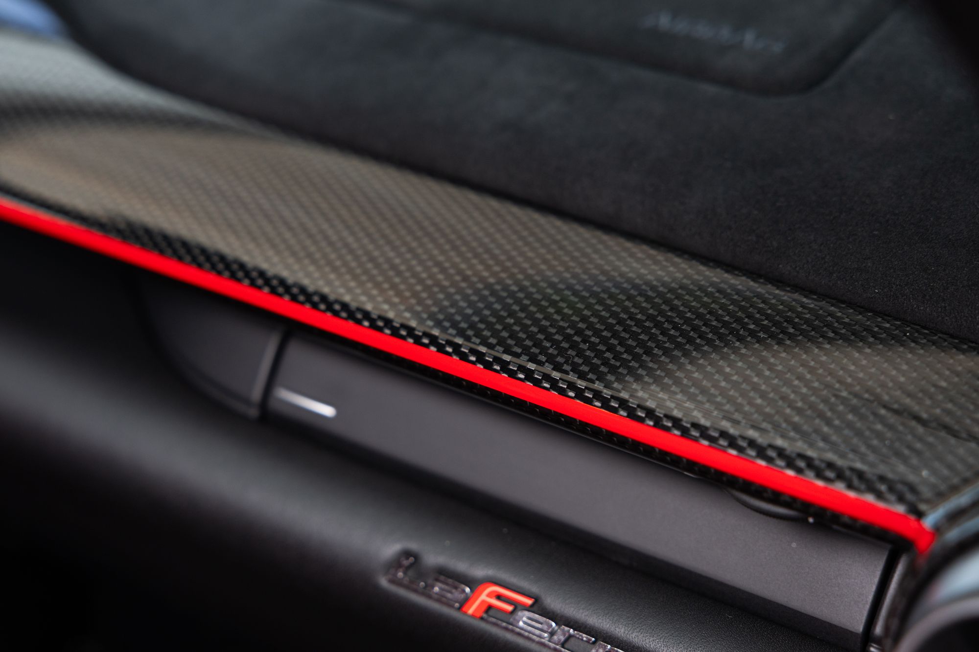 The car is equipped with carbon-ceramic Brembo brake discs, and uses a rigid carbon fibre monocoque structure designed by Ferrari's F1 technical director Rory Byrne. It has double wishbone suspension in the front, and a multi-link setup in the rear.