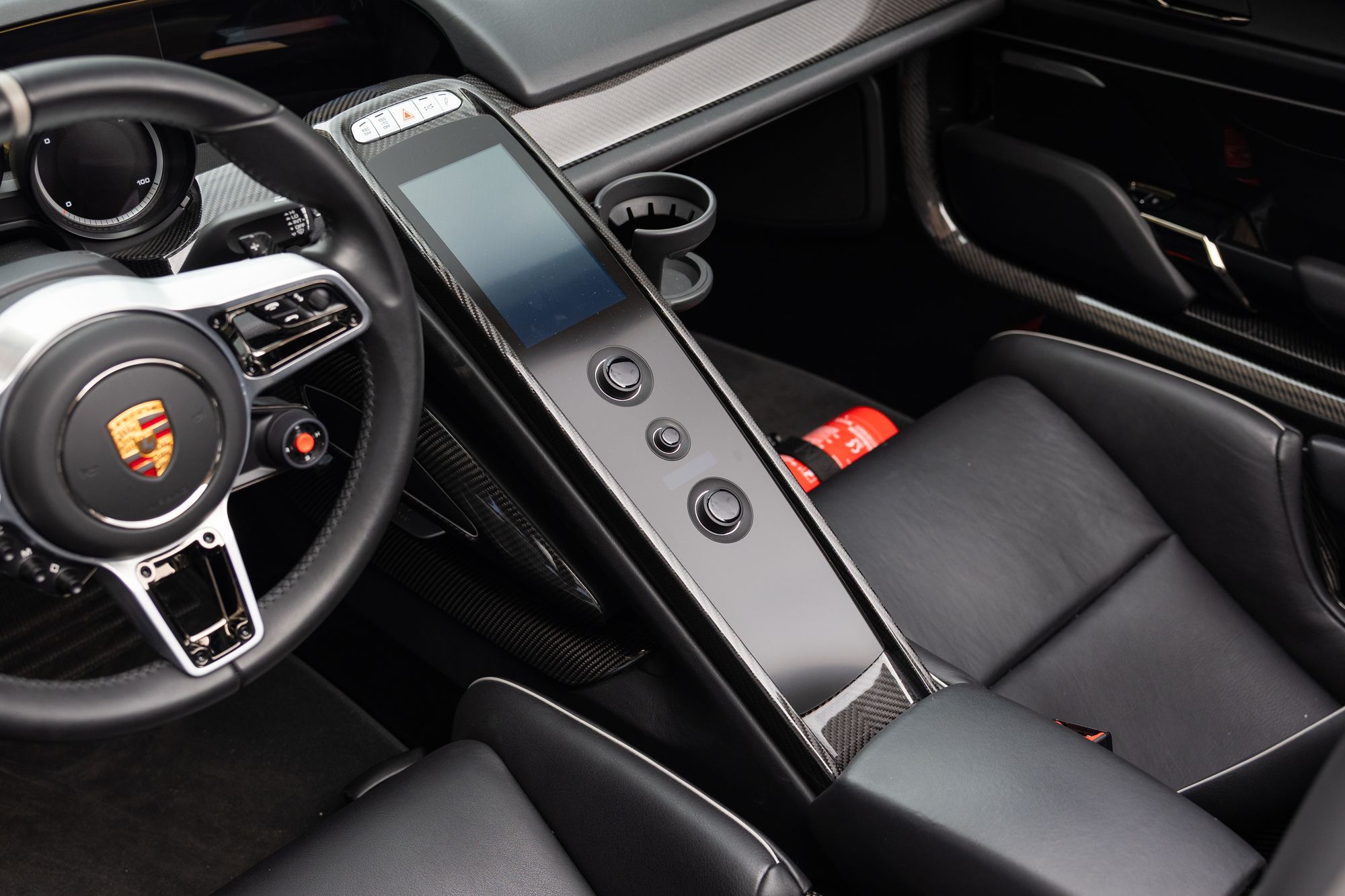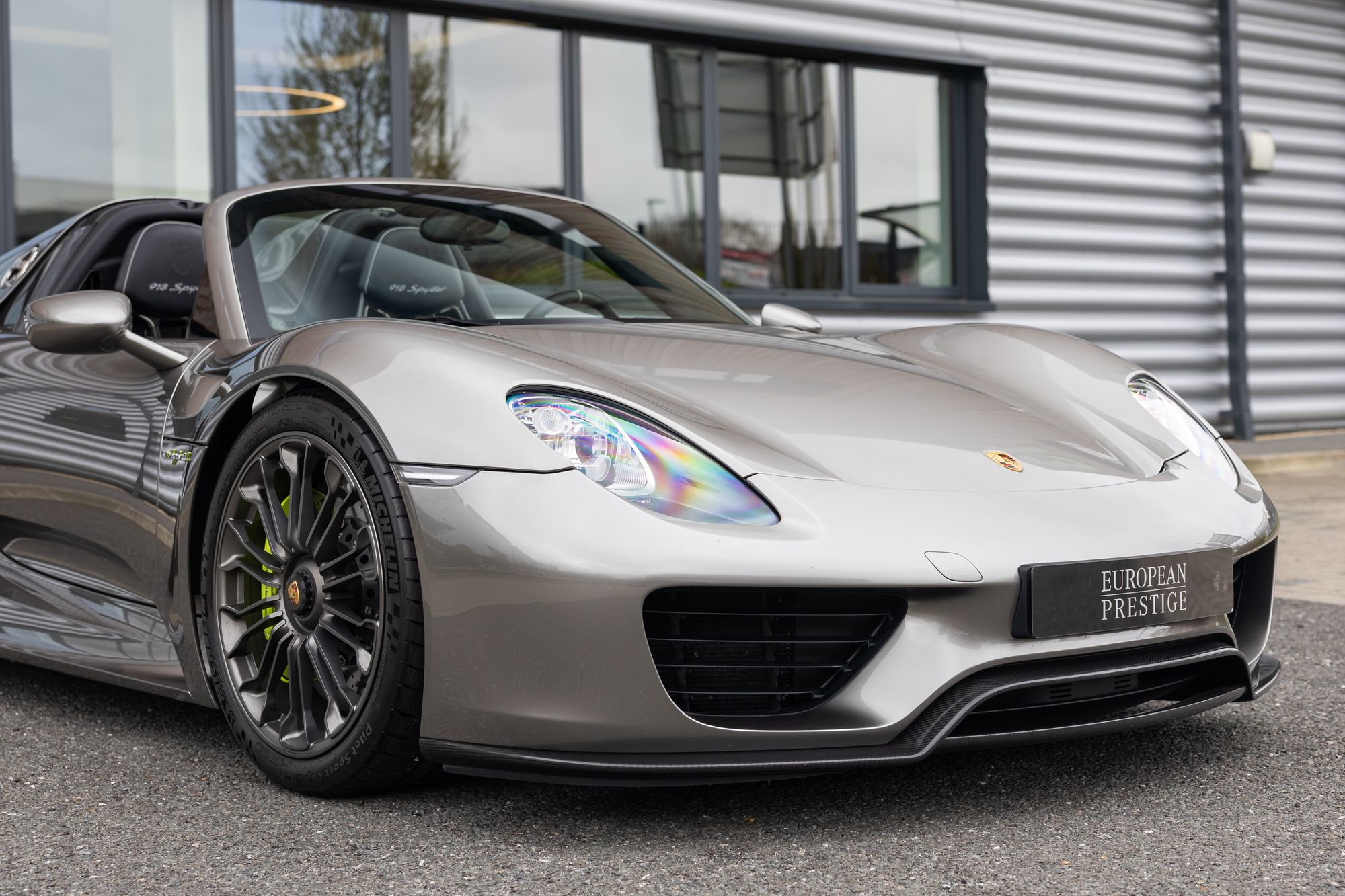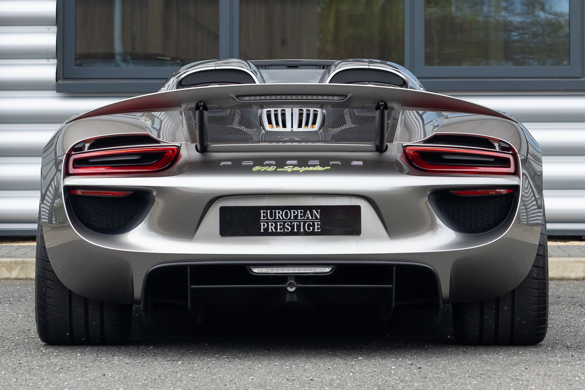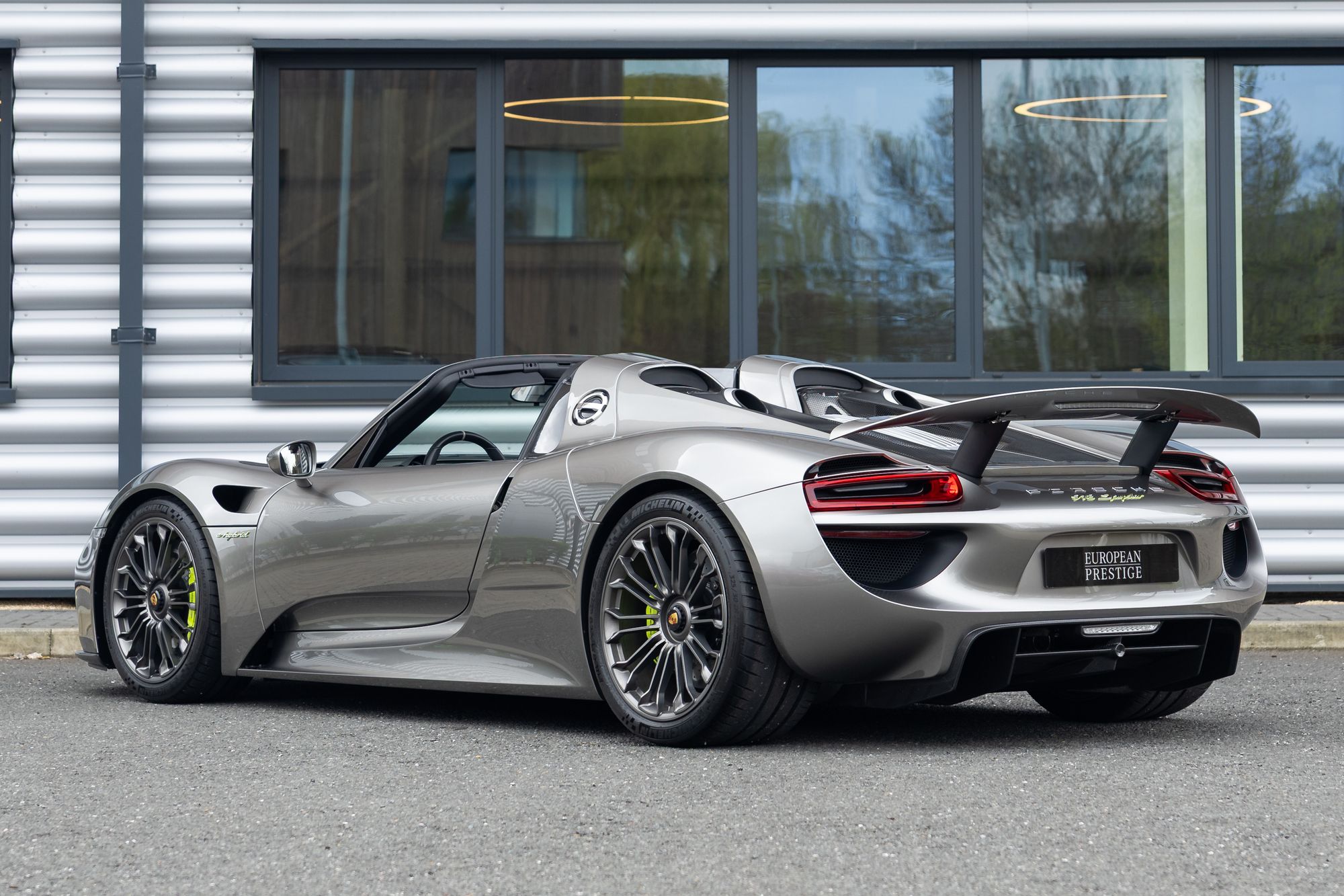 The Porsche 918 Spyder is a limited-production plug-in hybrid sports car, of which only 918 examples were built. It is powered by a mid-mounted naturally aspirated 4.6-litre V8 derived from the RS Spyder Le Mans Prototype, developing 599hp and 398lb ft of torque, with two electric motors delivering an additional 282hp. One 154hp electric motor drives the rear wheels in parallel with the engine and also serves as the main generator, delivering power to the rear axle via a seven-speed PDK gearbox, while the front 127hp electric motor directly drives the front axle, and an electric clutch decouples the motor when not in use. The system delivers 875hp and 944 lb-ft of torque in total, resulting in a claimed 0-62mph sprint time of just 2.6 seconds, and a top speed of 214mph. Independent media tests found it was even quicker, with Car and Driver magazine recording a 0-60mph time of just 2.2 seconds.