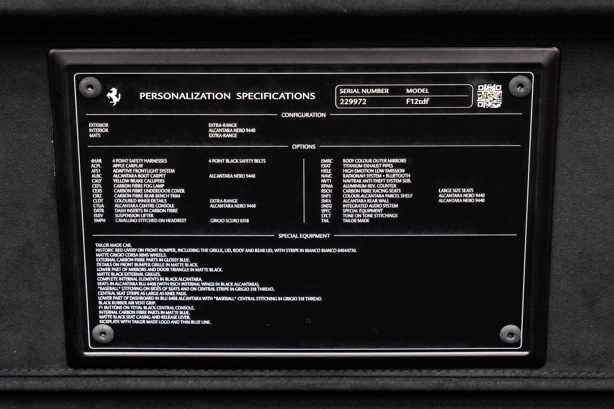 The Ferrari F12 TDF is a limited-production, track-focused version of the F12 Berlinetta, limited to only 799 units worldwide. The ‘TDF’ lettering pays homage to the Tour de France automobile race held between 1899 and 1986, which was regularly won by the Ferrari 250 between 1956 and 1964.