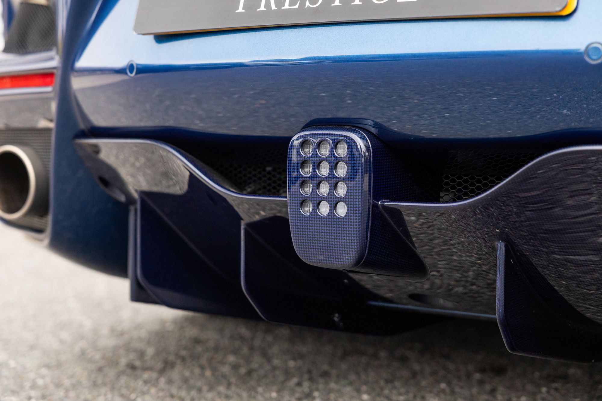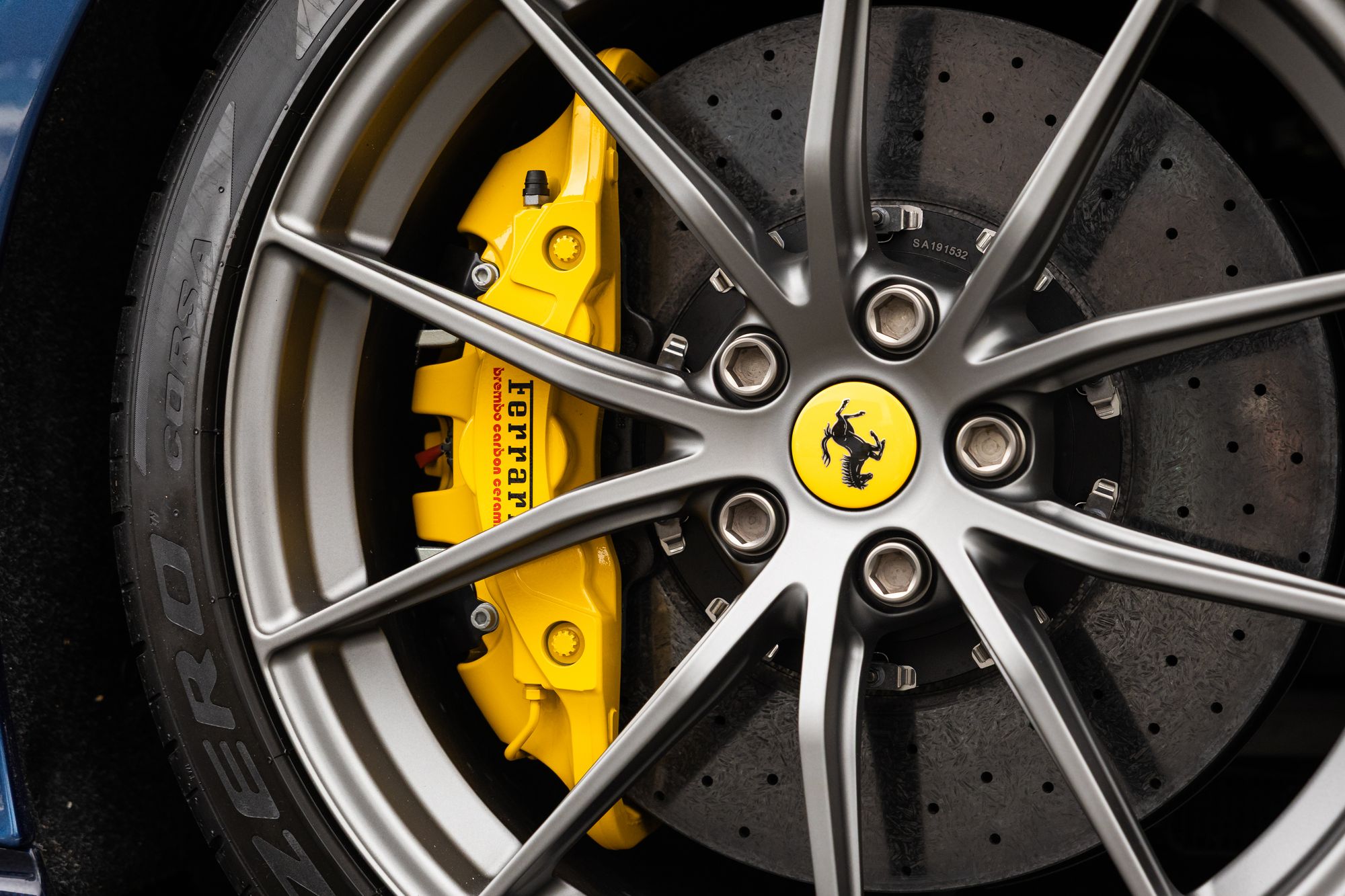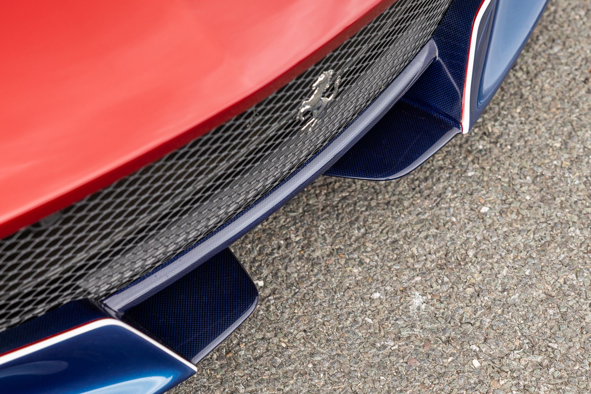 The TDF shares the Berlinetta’s 6.3-litre V12, but with power output increased to 769 hp at 8,500 rpm and 520 lb ft of torque at 6,750 rpm. It is also 110 kg lighter than the Berlinetta, having a claimed dry weight of 1,415 kg and a kerb weight of 1,520 kg. The result is a 0-62mph acceleration time of 2.9 seconds, and a claimed top speed of 211 mph. The car has recorded a 1-minute 21-second lap time on Ferrari's Fiorano test circuit, which was two seconds faster than the standard F12 Berlinetta and 488 GTB, and just 1.3 seconds behind the fastest lap set by the LaFerrari.