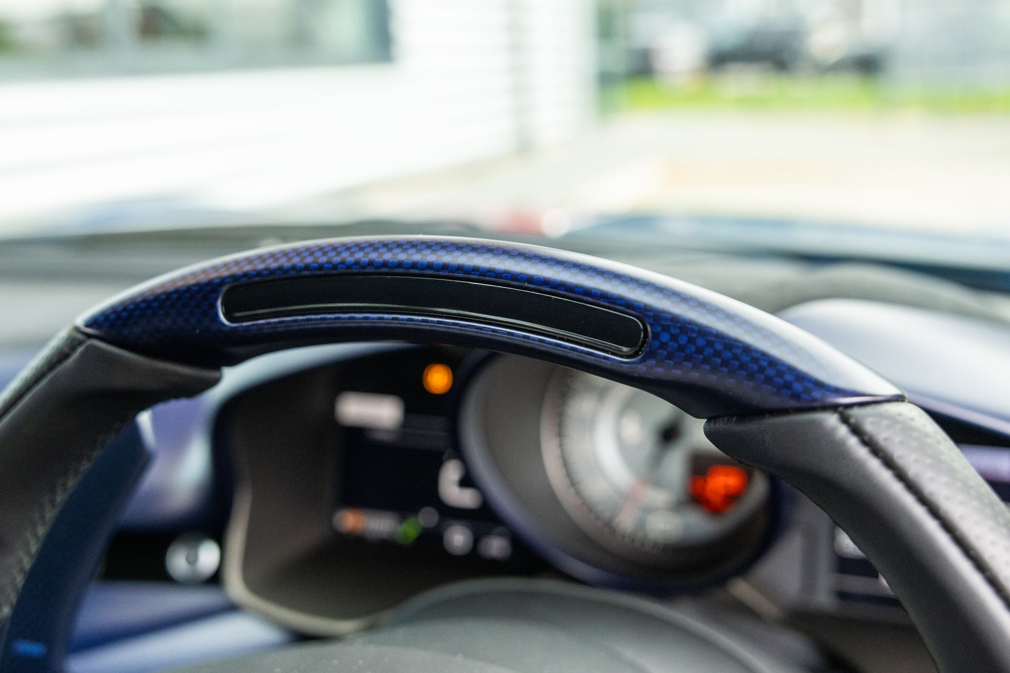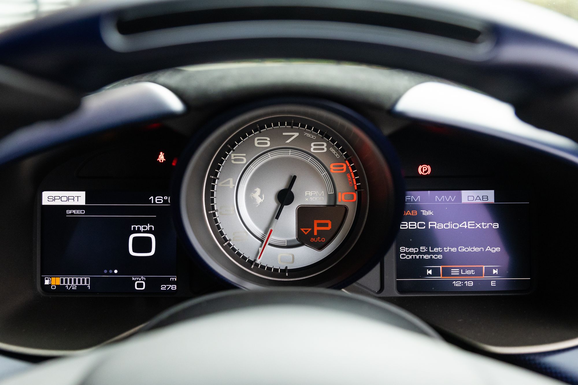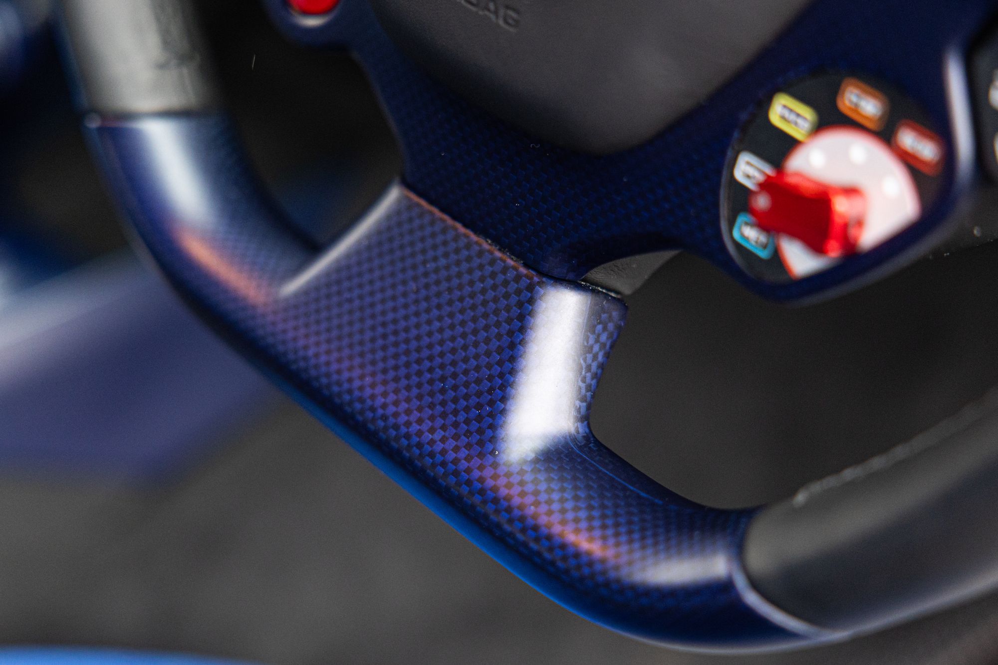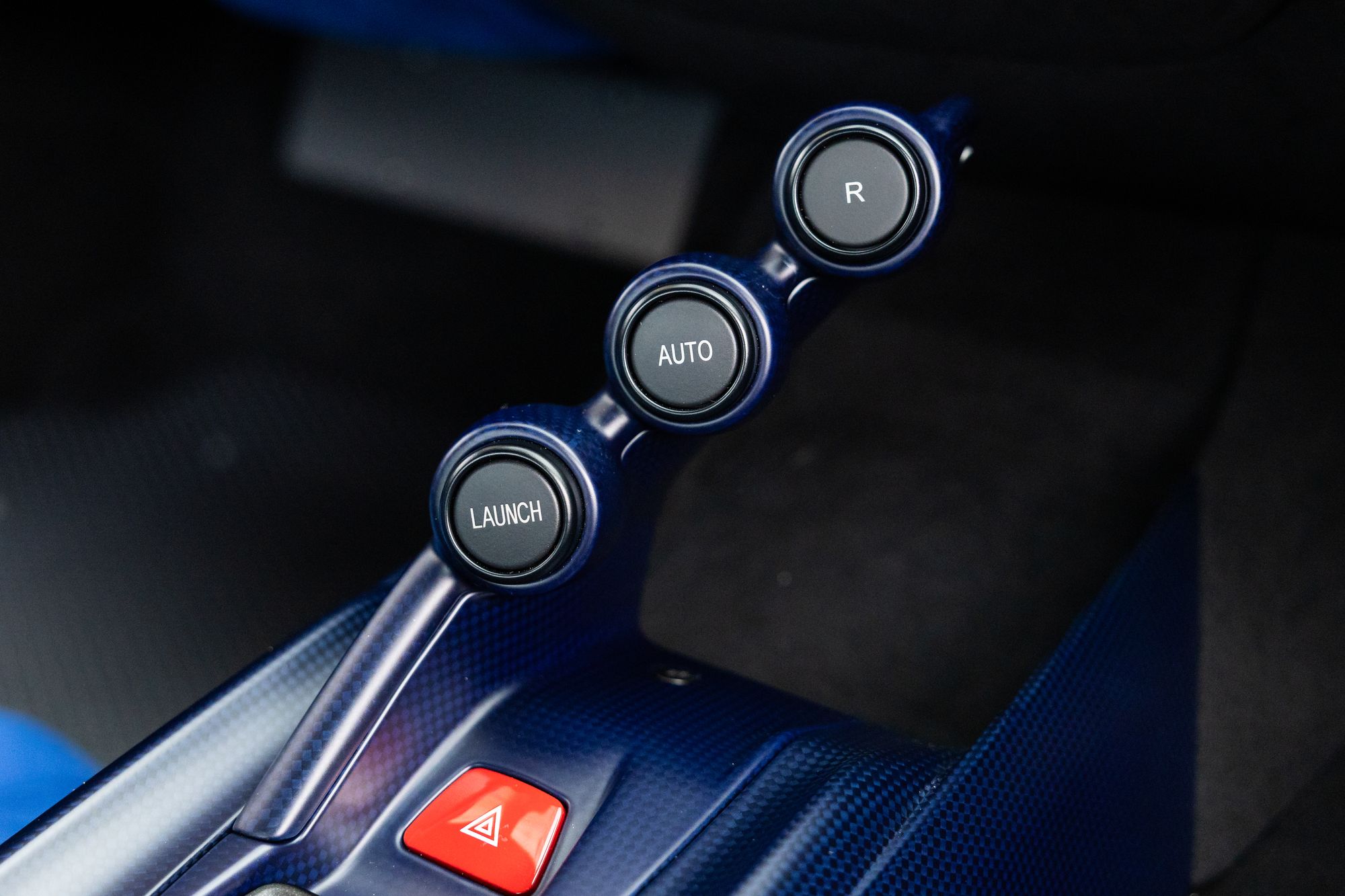 The TDF shares the Berlinetta’s 6.3-litre V12, but with power output increased to 769 hp at 8,500 rpm and 520 lb ft of torque at 6,750 rpm. It is also 110 kg lighter than the Berlinetta, having a claimed dry weight of 1,415 kg and a kerb weight of 1,520 kg. The result is a 0-62mph acceleration time of 2.9 seconds, and a claimed top speed of 211 mph. The car has recorded a 1-minute 21-second lap time on Ferrari's Fiorano test circuit, which was two seconds faster than the standard F12 Berlinetta and 488 GTB, and just 1.3 seconds behind the fastest lap set by the LaFerrari.
