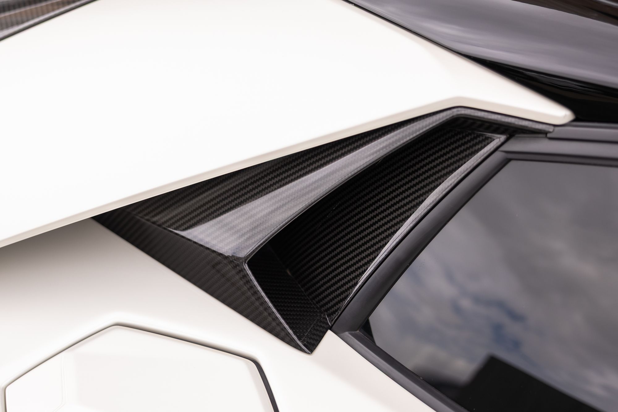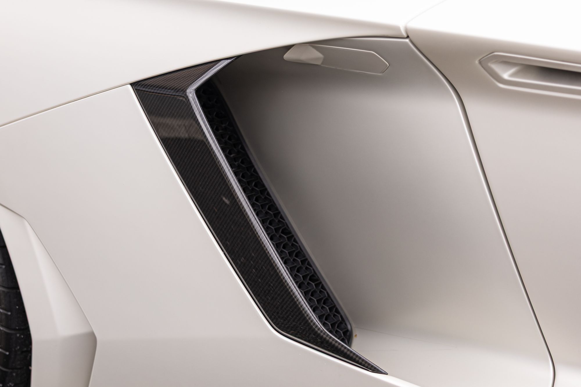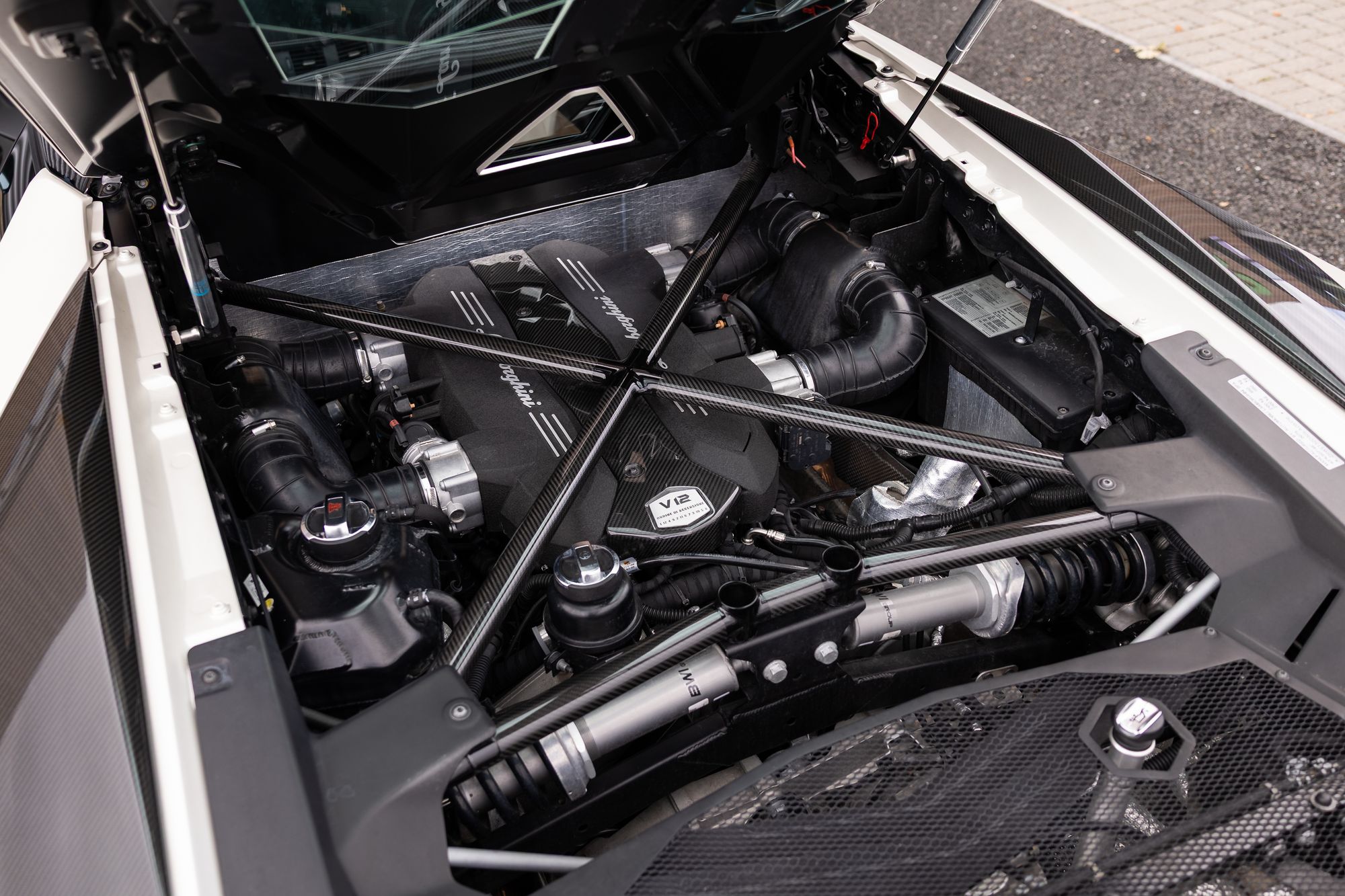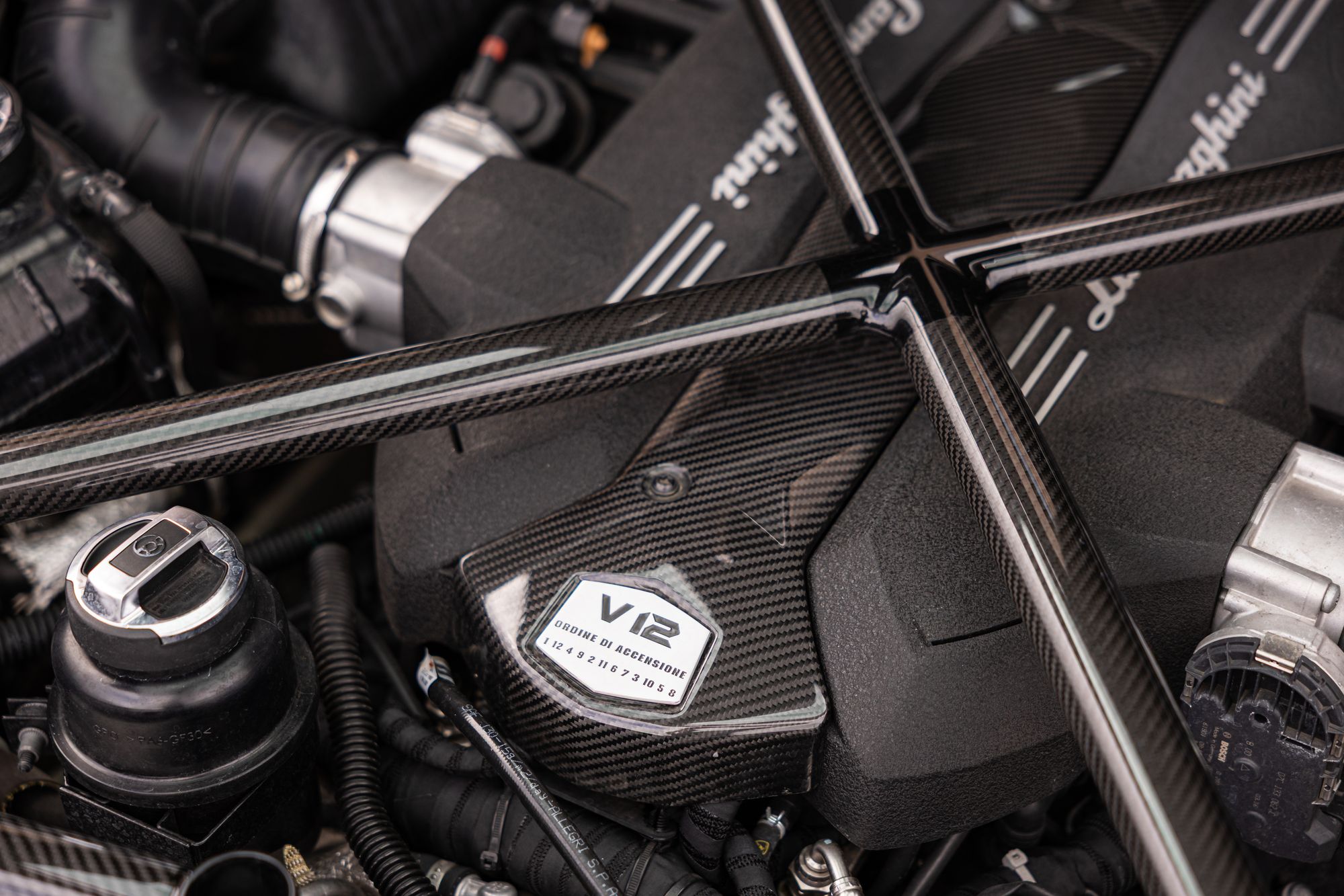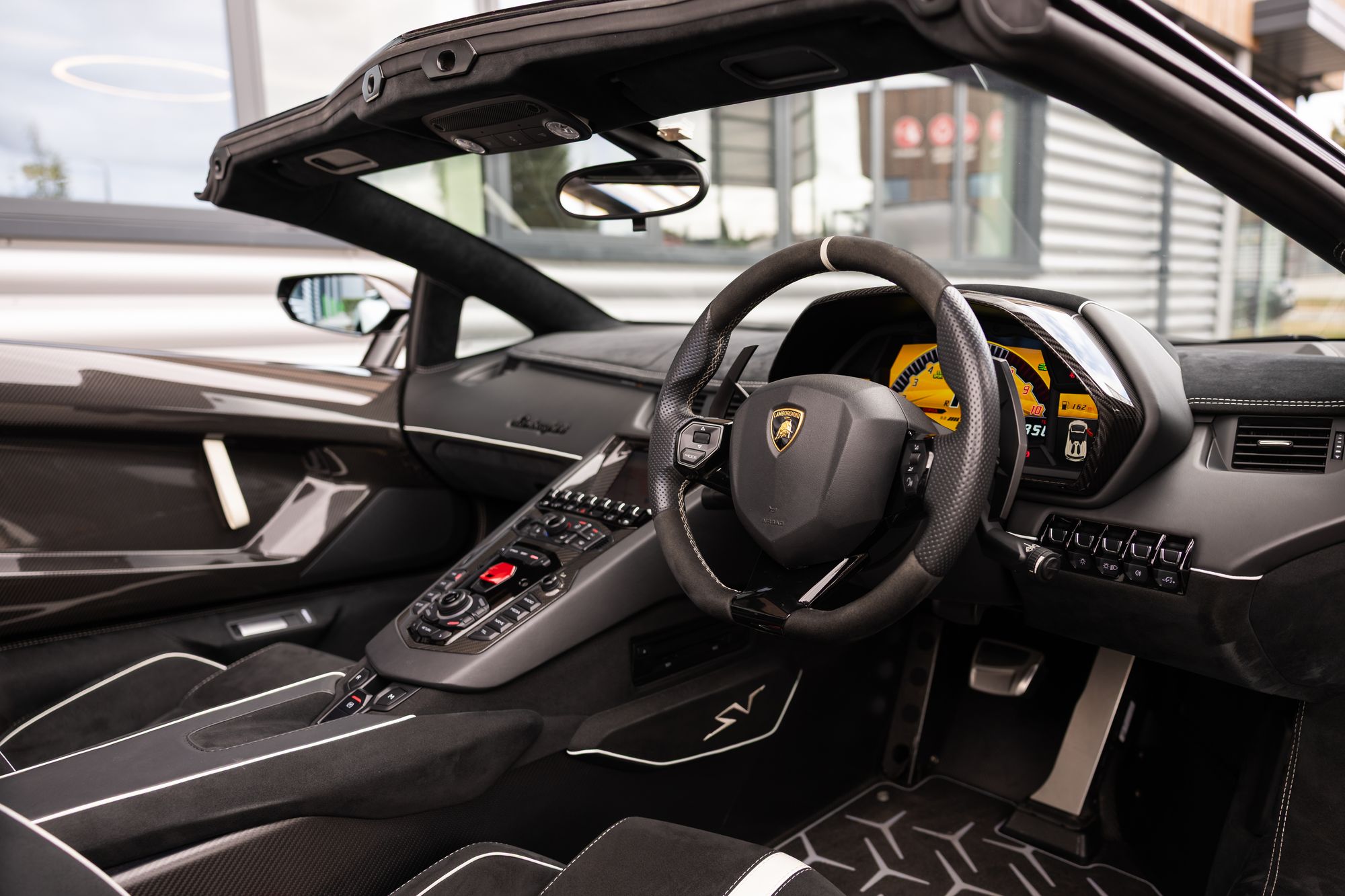 The Lamborghini Aventador, named after a Spanish bull that fought in Zaragoza, Aragón, in 1993, was introduced as the successor to the flagship Murciélago at the 2011 Geneva Motor Show. The SV (Super Veloce, which translates from Italian as ‘super fast’) variant was launched four years later in 2015, boasting increased use of carbon fibre both inside and out. The SV features improved aerodynamics, with notable upgrades including a revised front splitter and rear diffuser, along with a fixed CFRP rear wing.