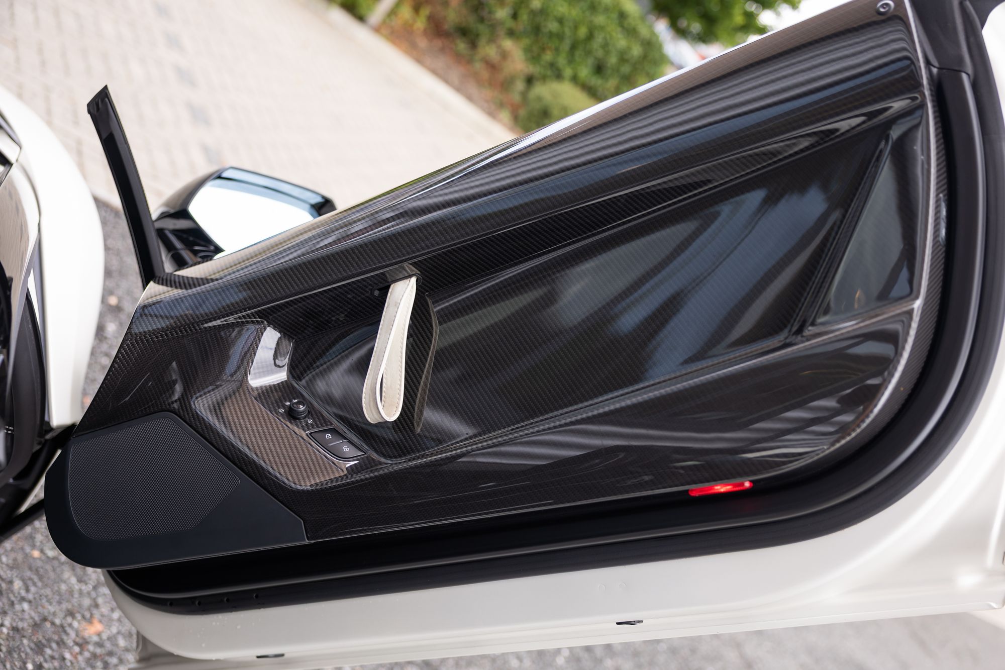 Key Points: Satin Paint Protection Film (PPF) Applied To Whole Car, Satin Bianco Canopus Exterior Paint, Carbon Fibre 'X' Frame and 'T' Engine Cover.