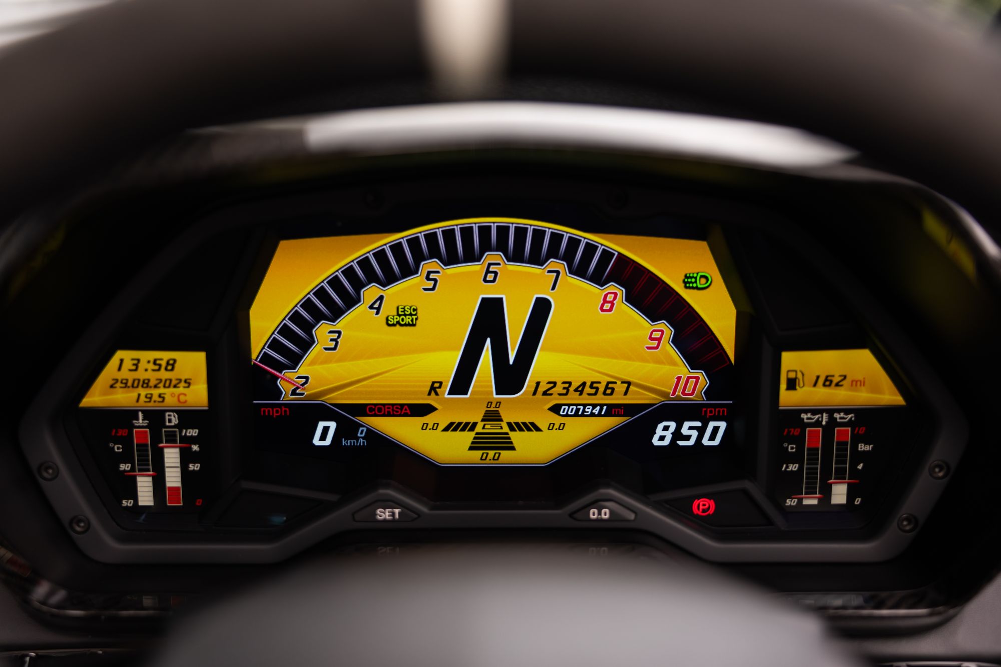 Power comes from a 6.5-litre ‘L539’ V12, tuned to produce 740hp (up from the standard car’s 691hp), with electronically controlled Haldex all-wheel drive and a reprogrammed version of the seven-speed single-clutch Graziano automated manual transmission, that now shifts in just 50 milliseconds. Together with a higher 8,500rpm redline, it means the 0-62mph time is down from 2.9 to 2.8 seconds, and the car can hit a claimed top speed of 217mph.