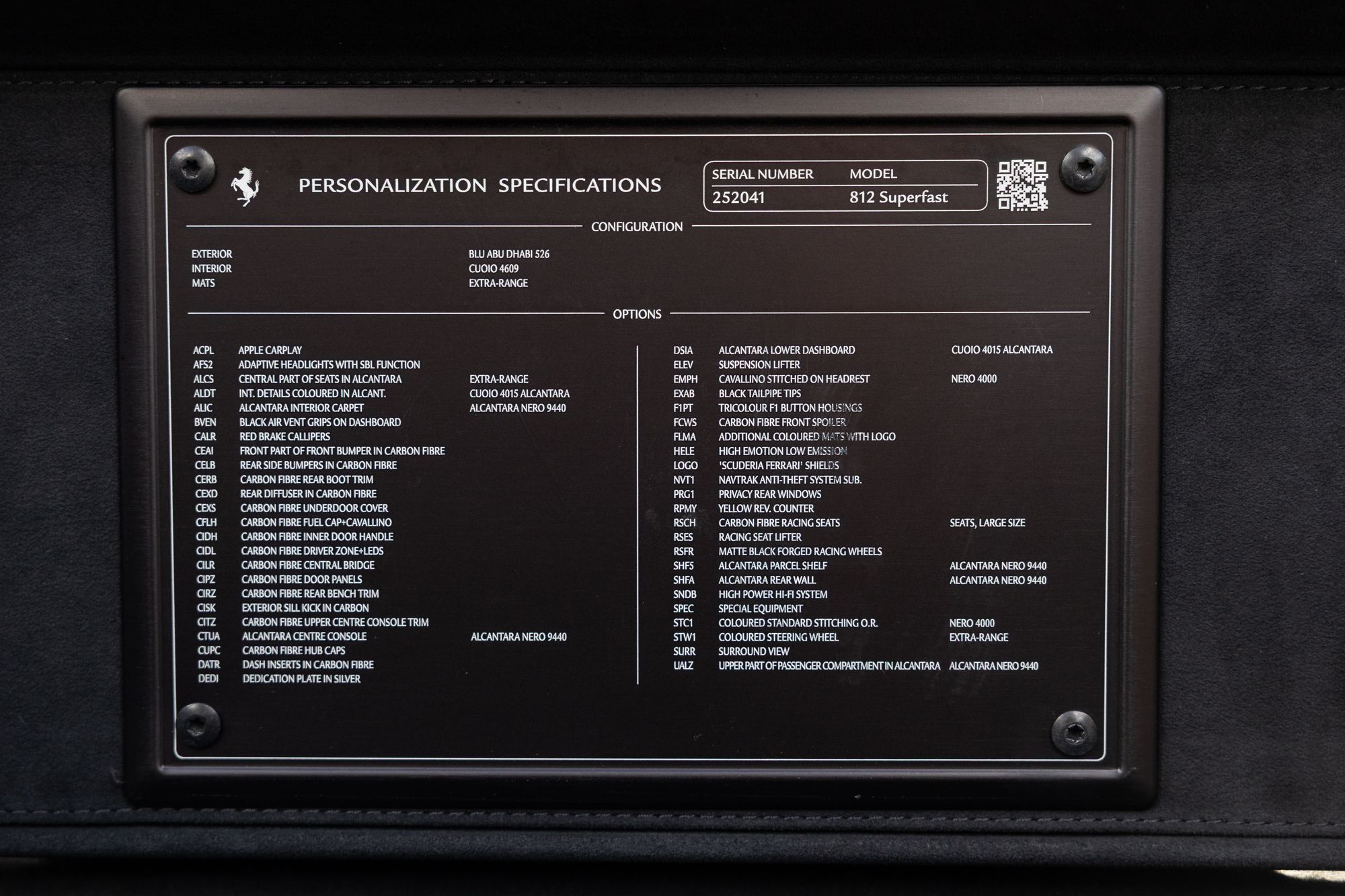 Key Points: Paint Protection Film (PPF) Applied To Whole Car, Blu Abu Dhabi Exterior Paint, Tricolour F1 Button Housings, Suspension Lifter.