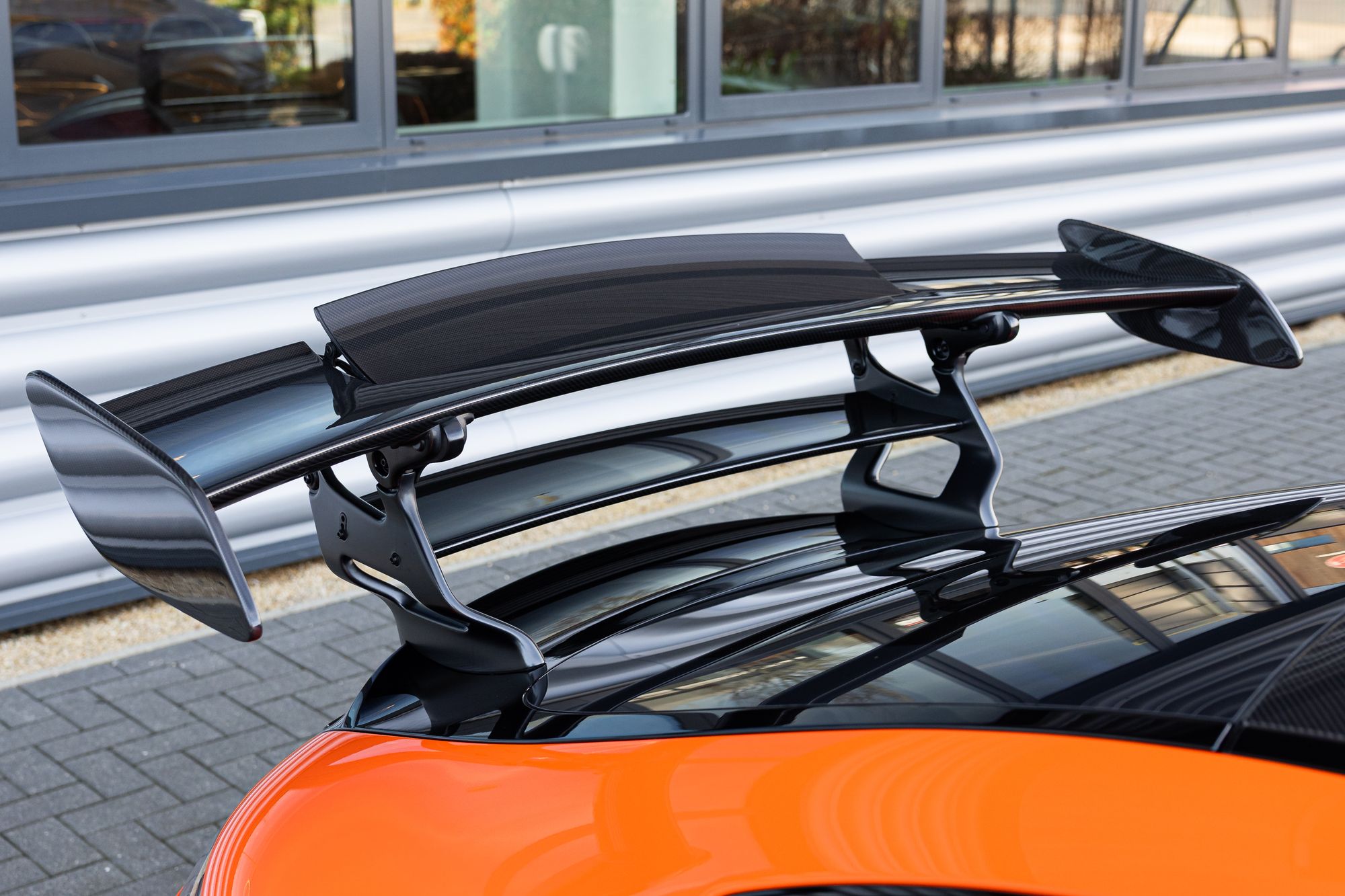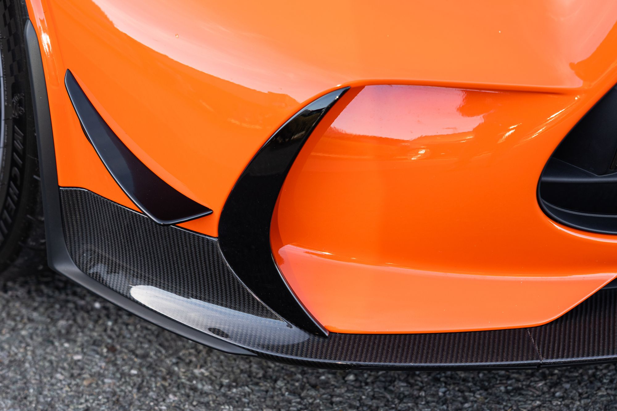 As well as all this extra power, the styling cannot go unnoticed. Take the sleek, smooth lines of the standard GT and completely revamp them with new wings, fins, and carbon fibre as far as the eye can see. A new deployable front splitter is now added to give unrivalled downforce to the front end. A new carbon fibre bonnet with two huge scoops designed to draw air directly through the front radiator to help cool the V8. All of this is tied together with an enormous double-decker carbon fibre rear wing designed to keep the back end planted at any speed.