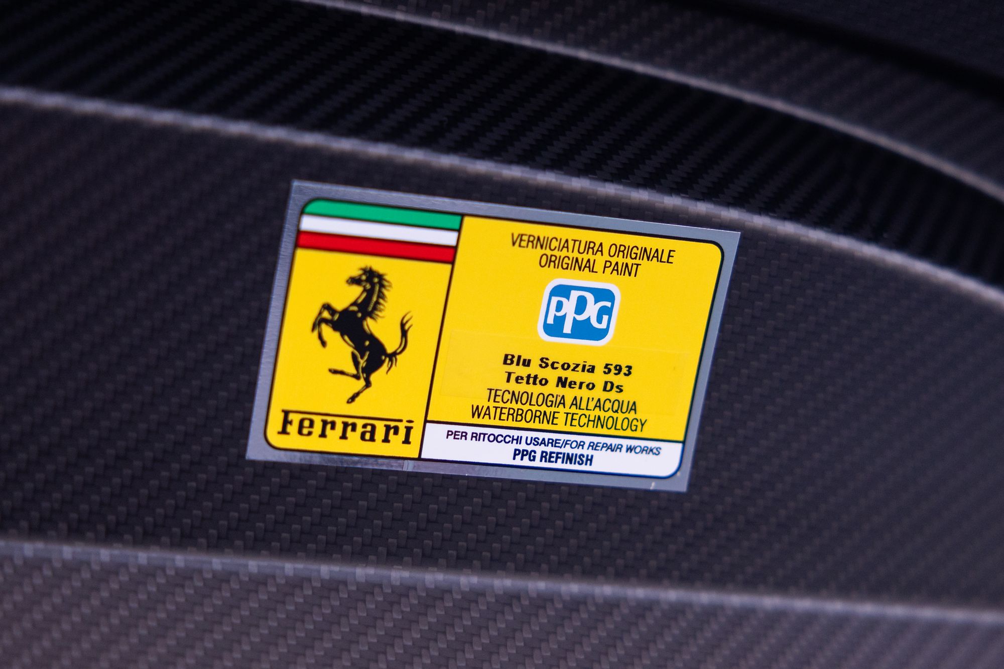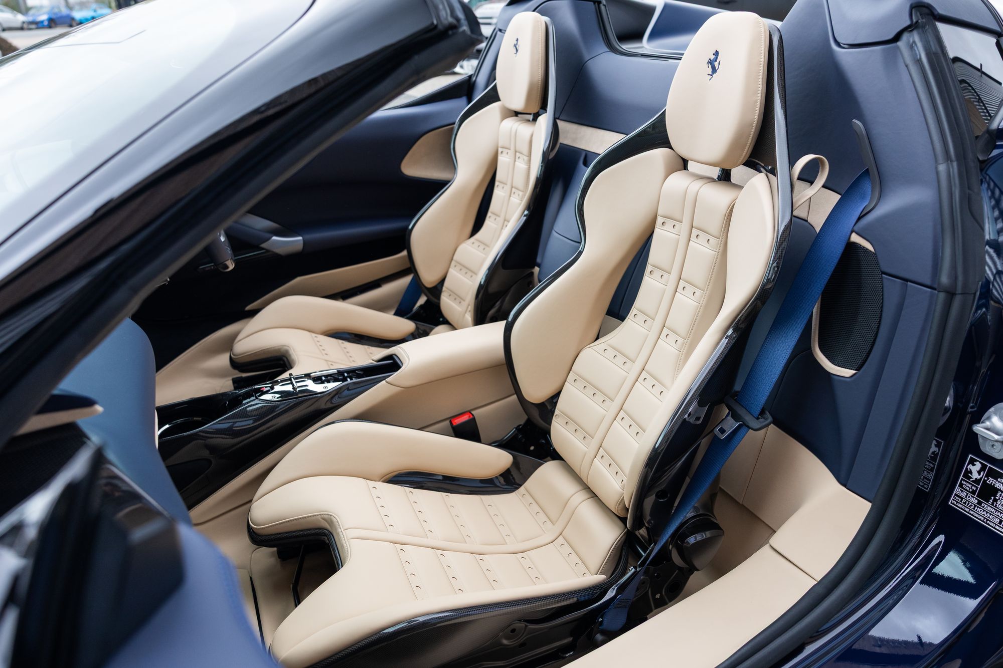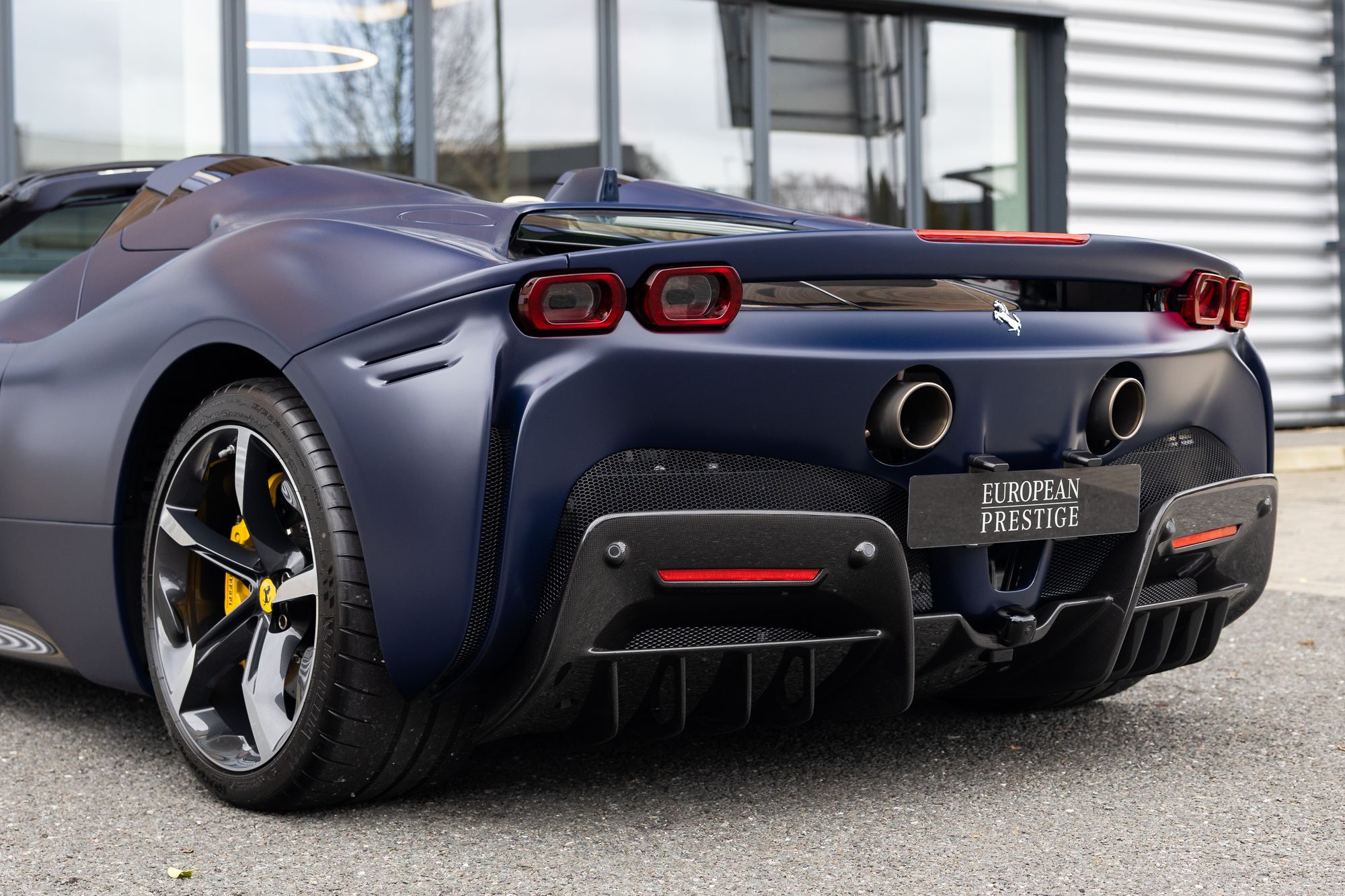 Key Points: Satin Paint Protection Film (PPF) Applied To Whole Car, 'Blu Scozia' Ferrari Historical Exterior Paint, Two-Tone Bodywork 'Nero' Painted Roof, Suspension Lifter.