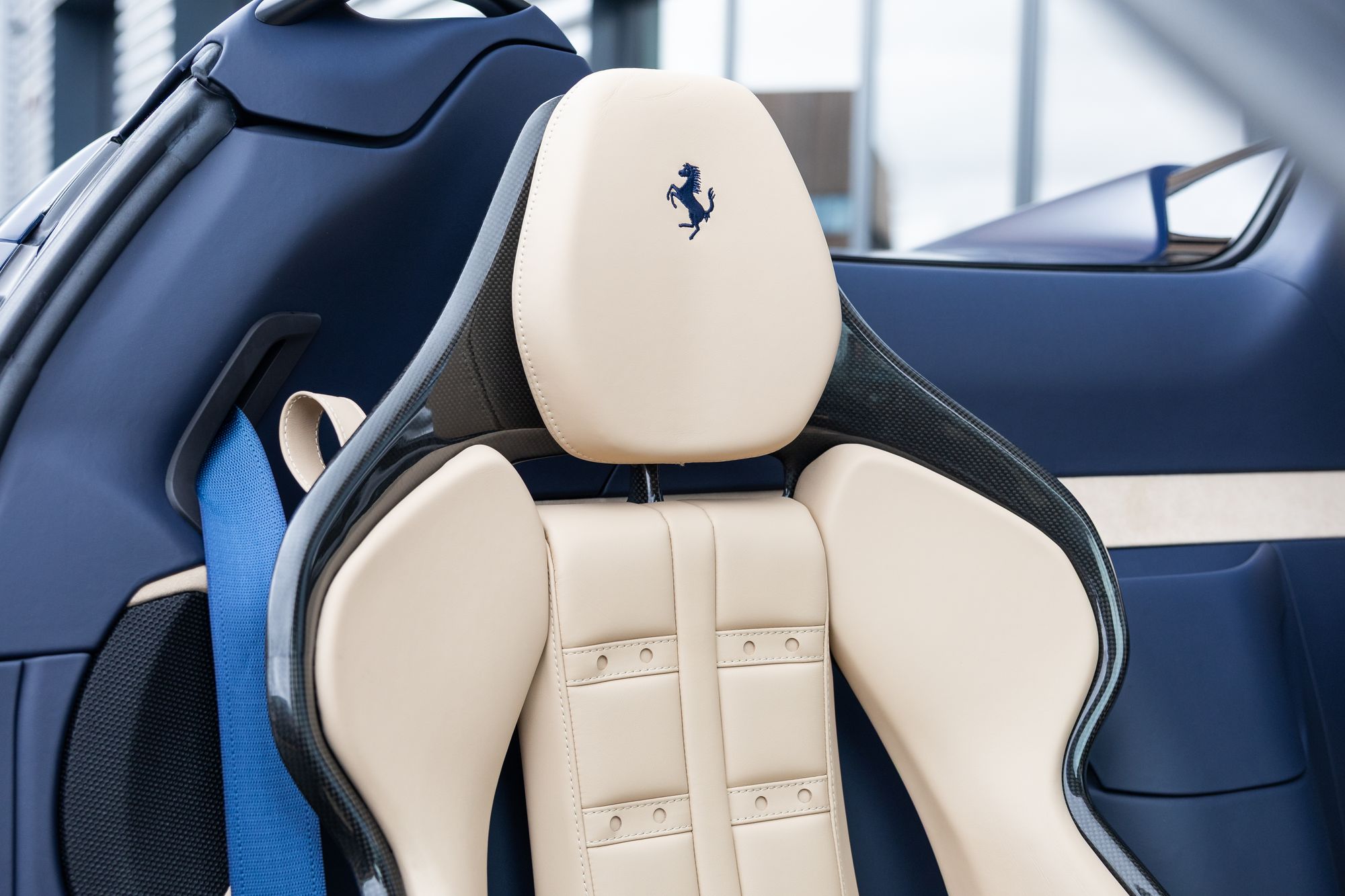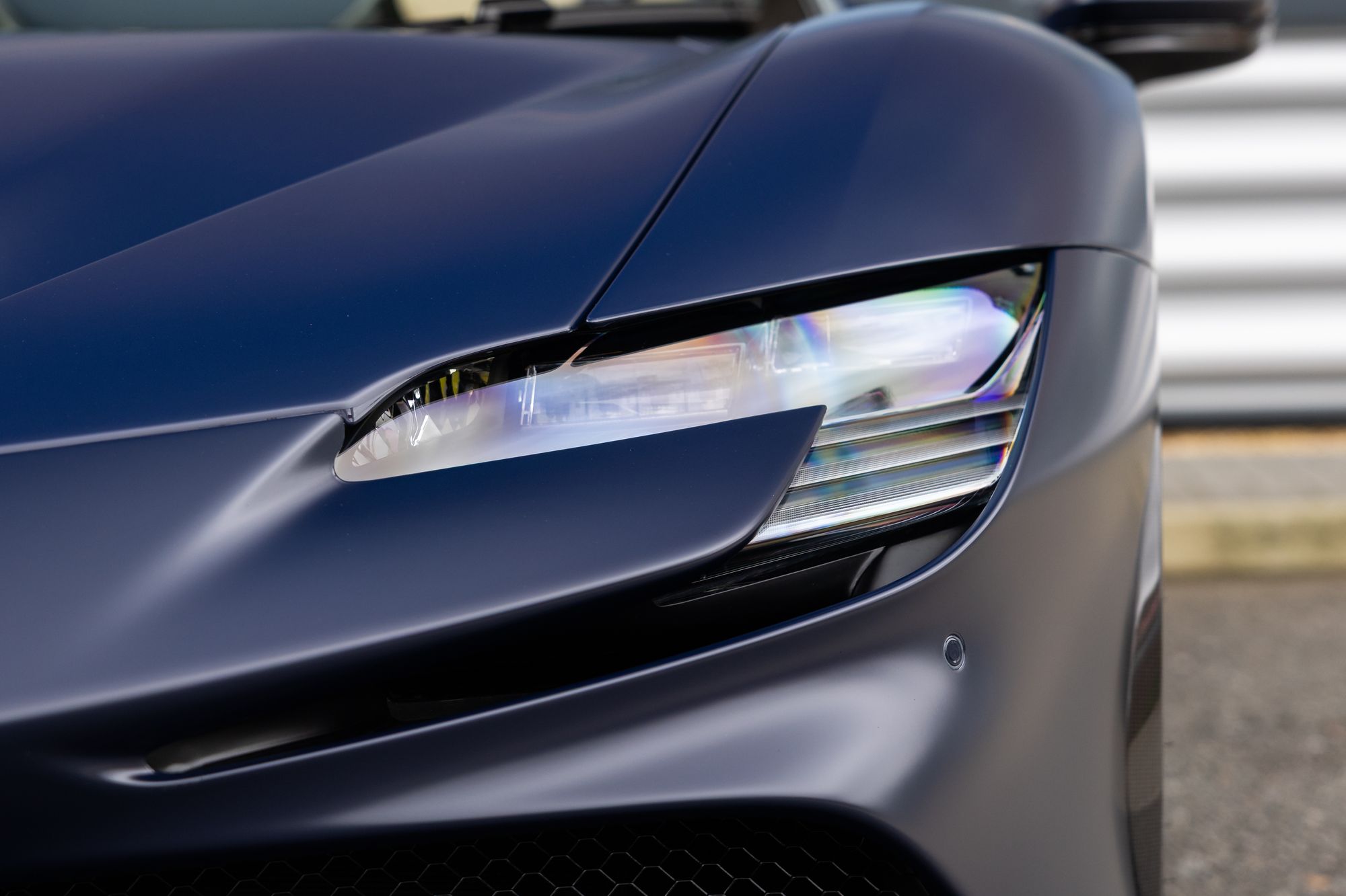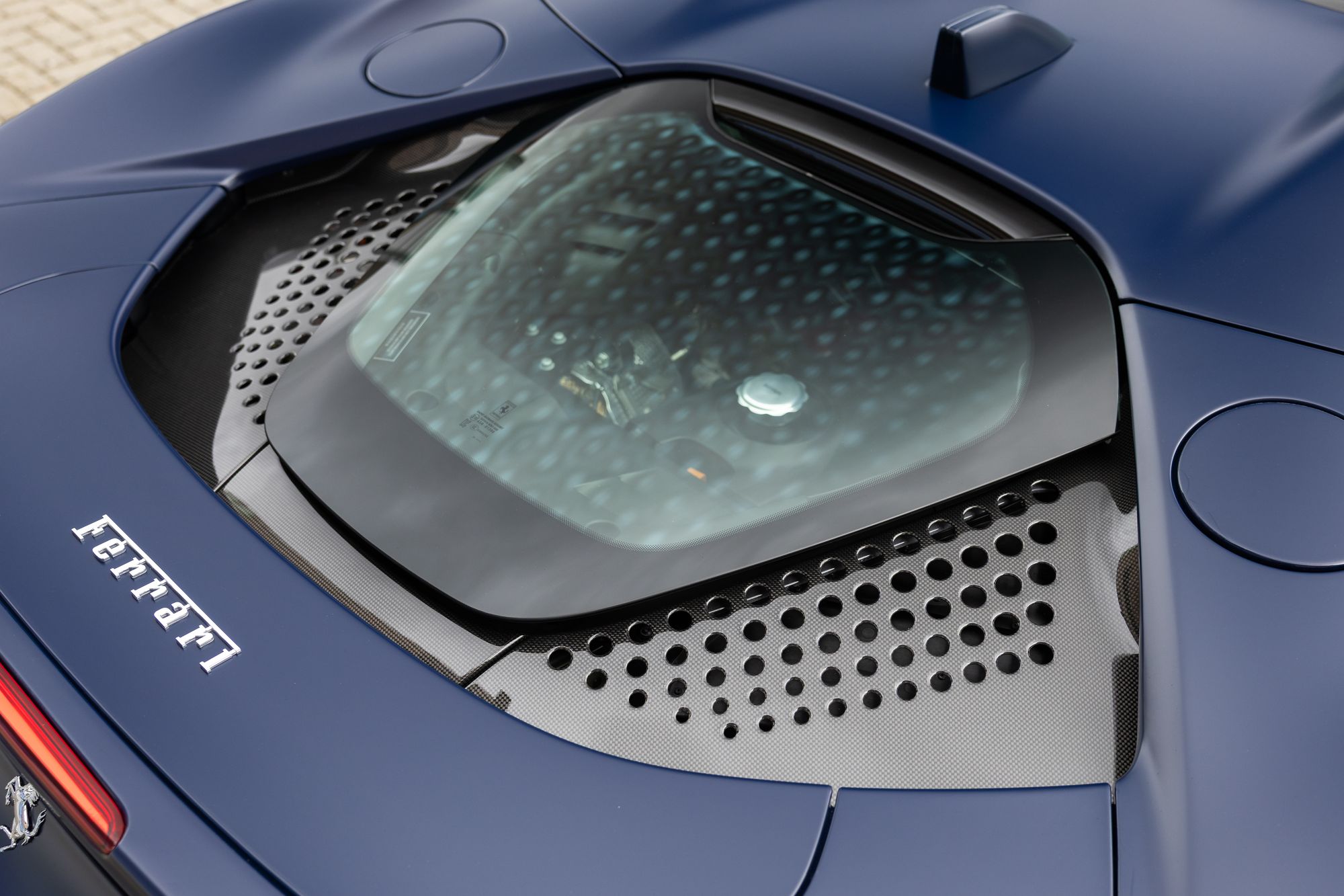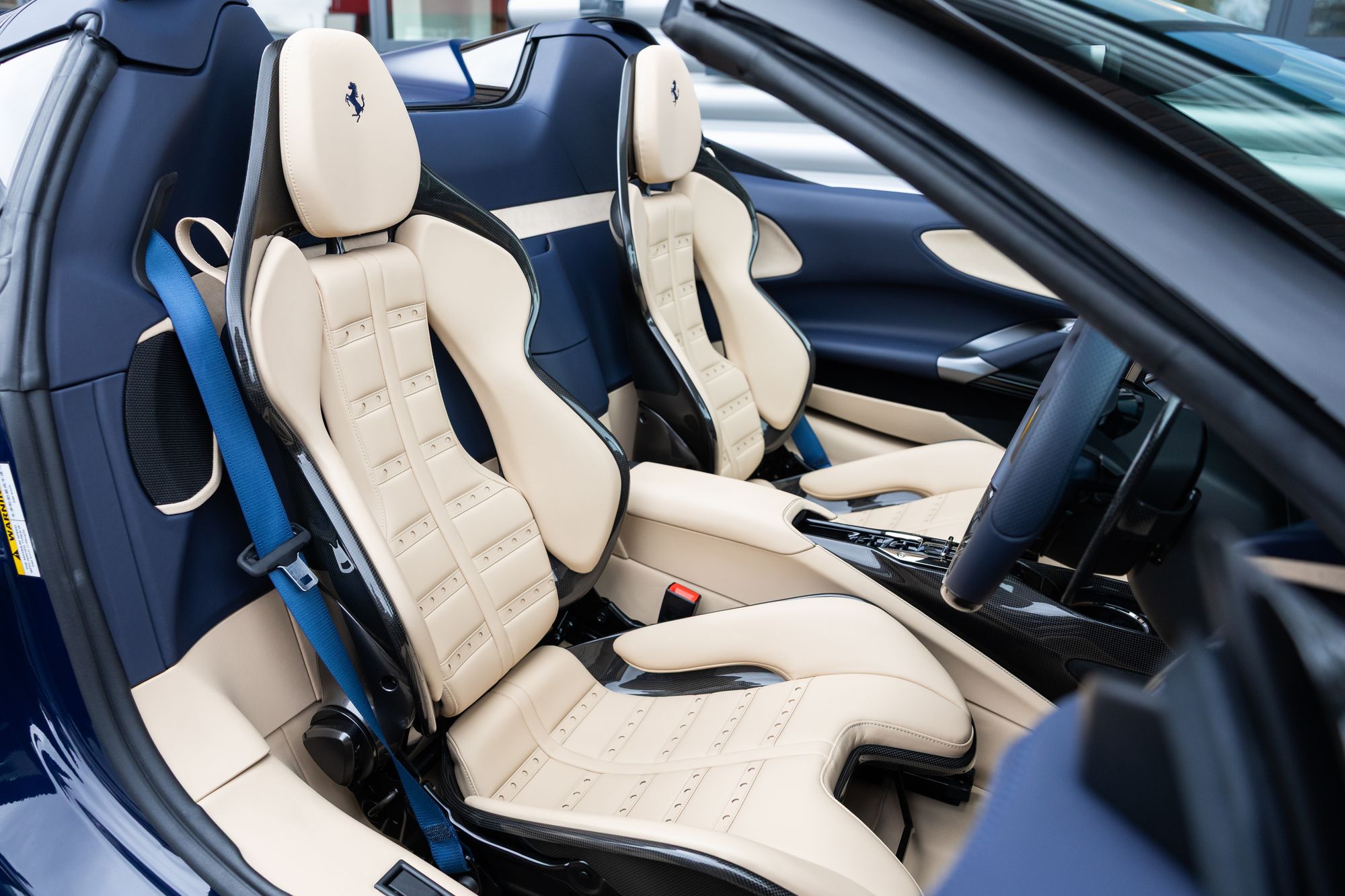 Key Points: Satin Paint Protection Film (PPF) Applied To Whole Car, 'Blu Scozia' Ferrari Historical Exterior Paint, Two-Tone Bodywork 'Nero' Painted Roof, Suspension Lifter.