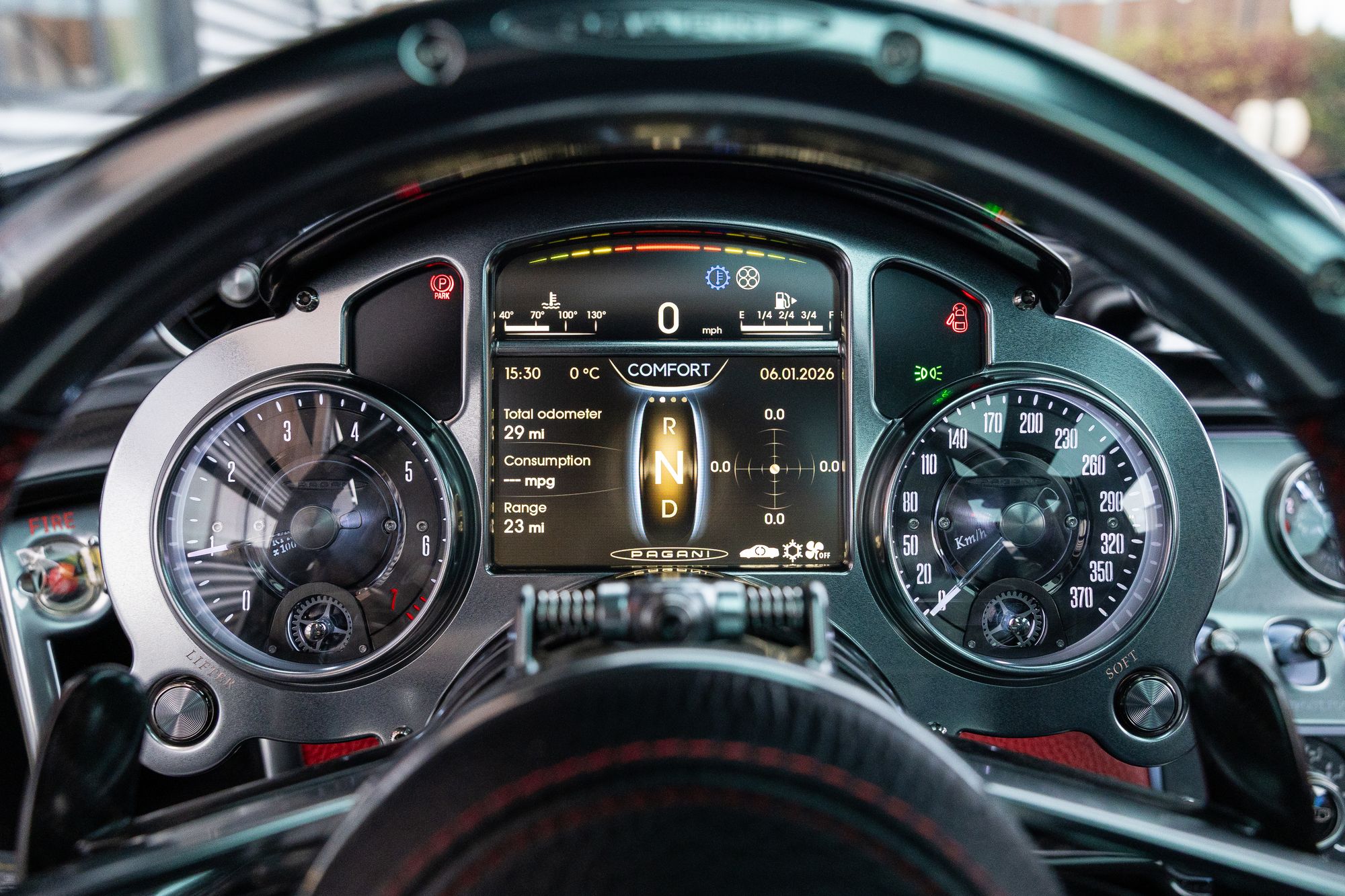 The cabin boasts extensive use of hand-stitched leather, exposed carbon-fibre and precision-milled aluminum components, as well as traditional analogue dials and tactile switches, as opposed to relying on touchscreen systems.