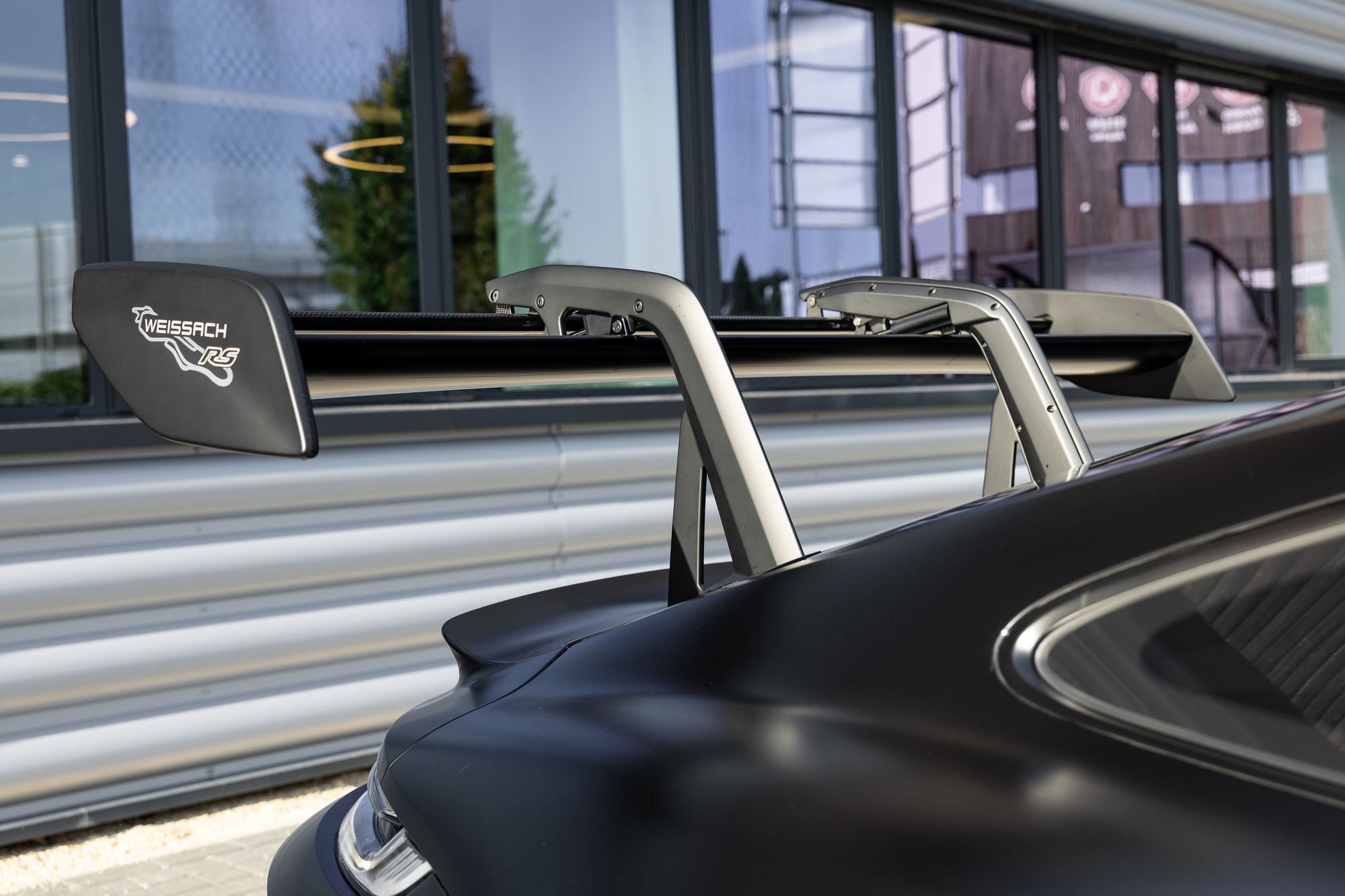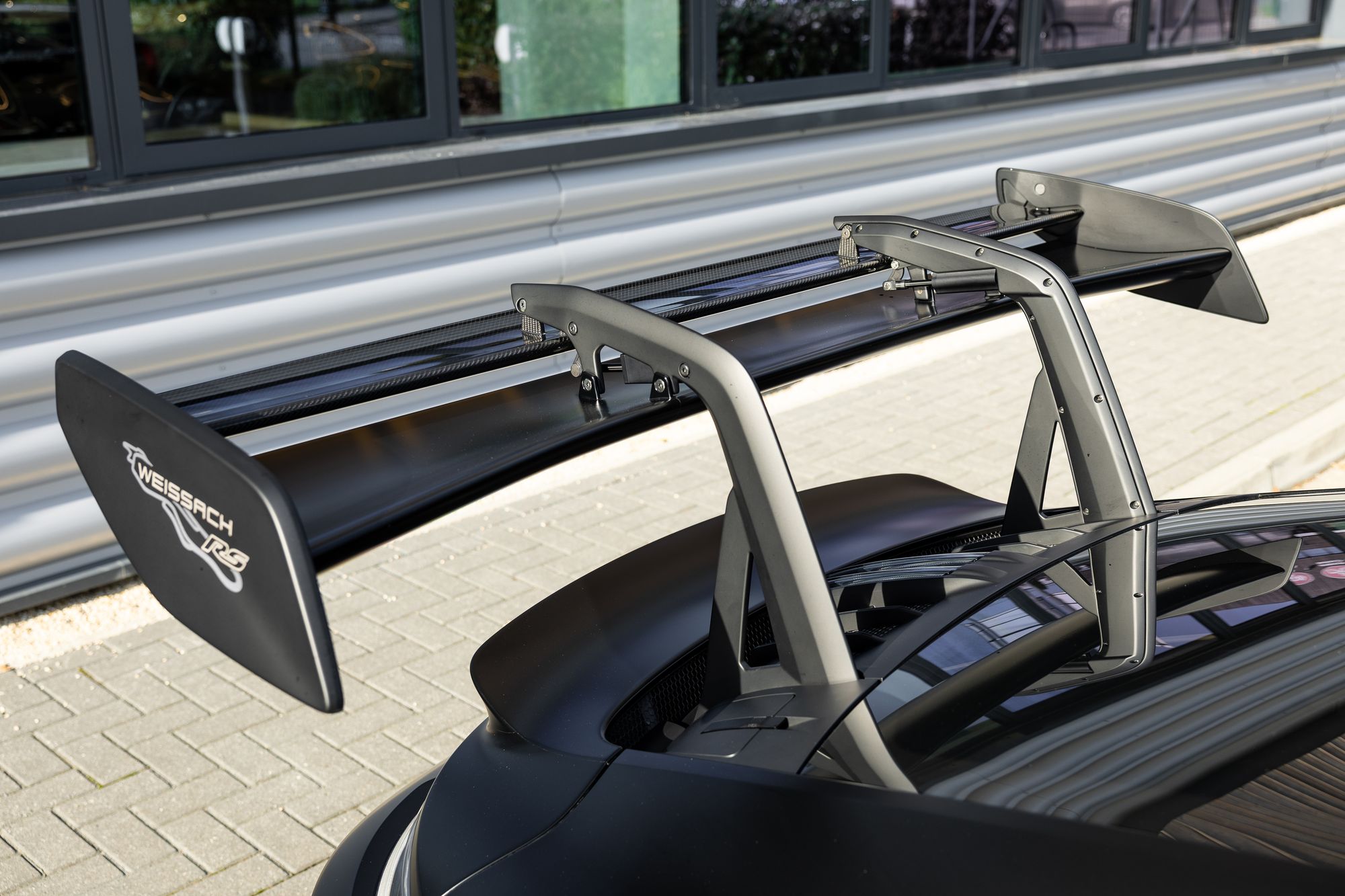 The Weissach Package reduces the weight further via the use of a carbon weave finish for the front lid, roof, mirror shells, and part of the large rear wing. Rear axle components such as the stabilisers, coupling rod and shear panel are also made of carbon, resulting in reduced unsprung mass and further improved handling. In conjunction with the Weissach package, lightweight magnesium forged wheels can be specified, which are more than 20% lighter than the standard aluminium wheels.