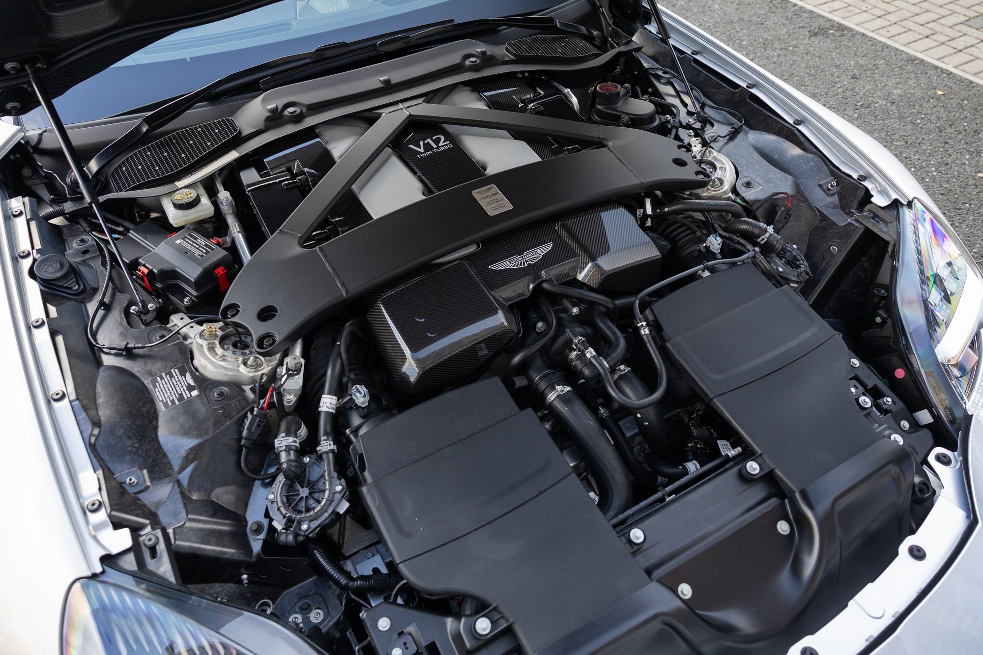The Aston Martin Vanquish Volante is the open-top version of the marque’s flagship grand tourer. At its heart is a front-mounted 5.2-litre twin-turbocharged V12 that produces 824bhp and 1,000Nm of torque, paired with a rear-mounted eight-speed ZF automatic transmission that drives the rear wheels, enabling the car to accelerate from 0-62 mph in 3.4 seconds, before hitting a top speed of 214 mph. This makes it the fastest series-production convertible in Aston Martin’s history, while still maintaining the comfort and refinement expected of a grand tourer.