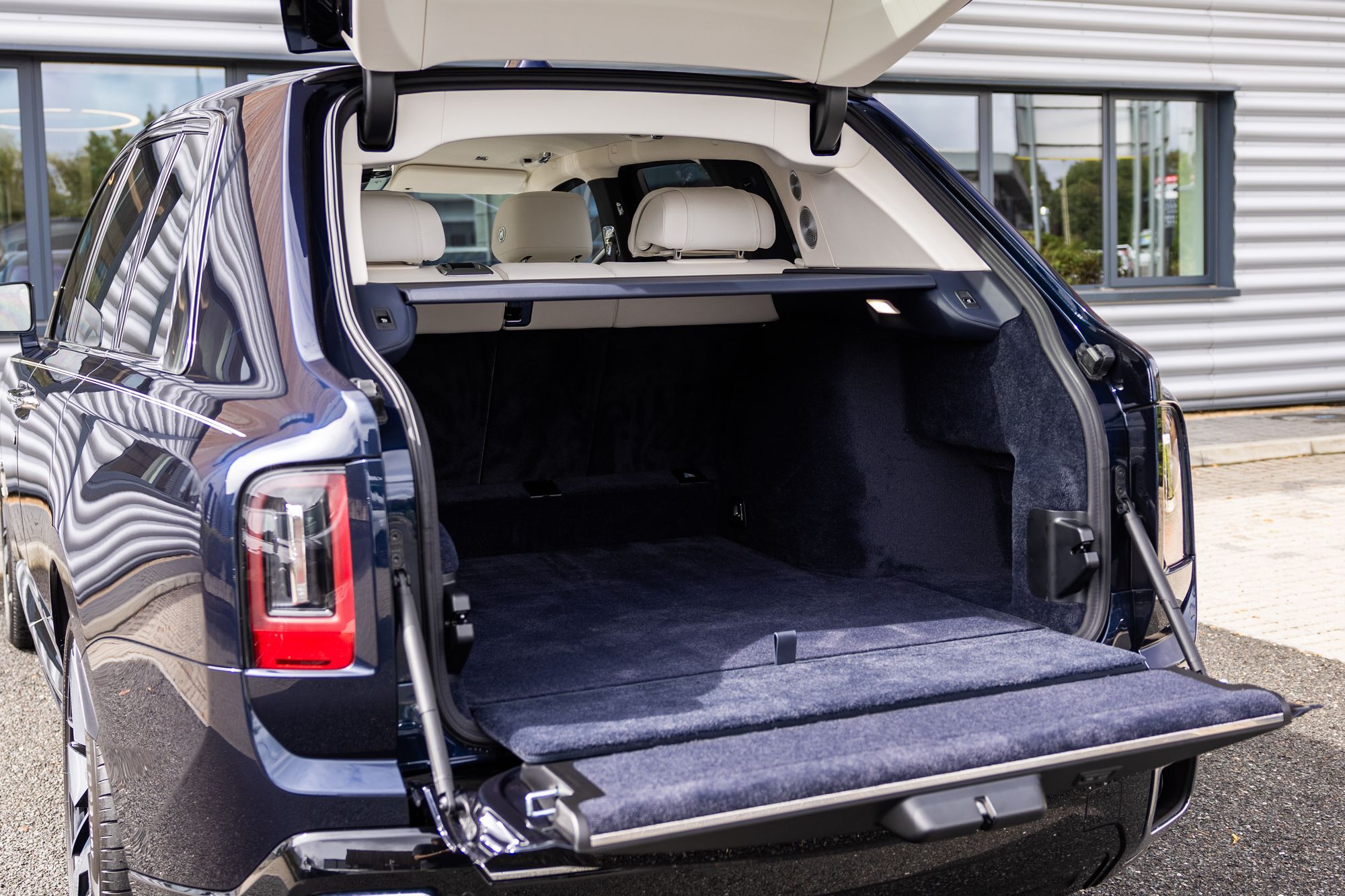 The Cullinan uses an aluminium space frame chassis, which is a version of the modular ‘Architecture of Luxury’ platform which made its debut in the Phantom VIII. Its exterior design has been adapted from the 8th-generation Rolls-Royce Phantom, such as the front grille and the headlights, while the interior features leather-trimmed seats and wooden appliances, as well as a luggage compartment-mounted cocktail table with leather camping seats, which is known as the ‘viewing suite’. The Cullinan is the only Rolls-Royce to have a glass partition between the luggage and passenger compartments.