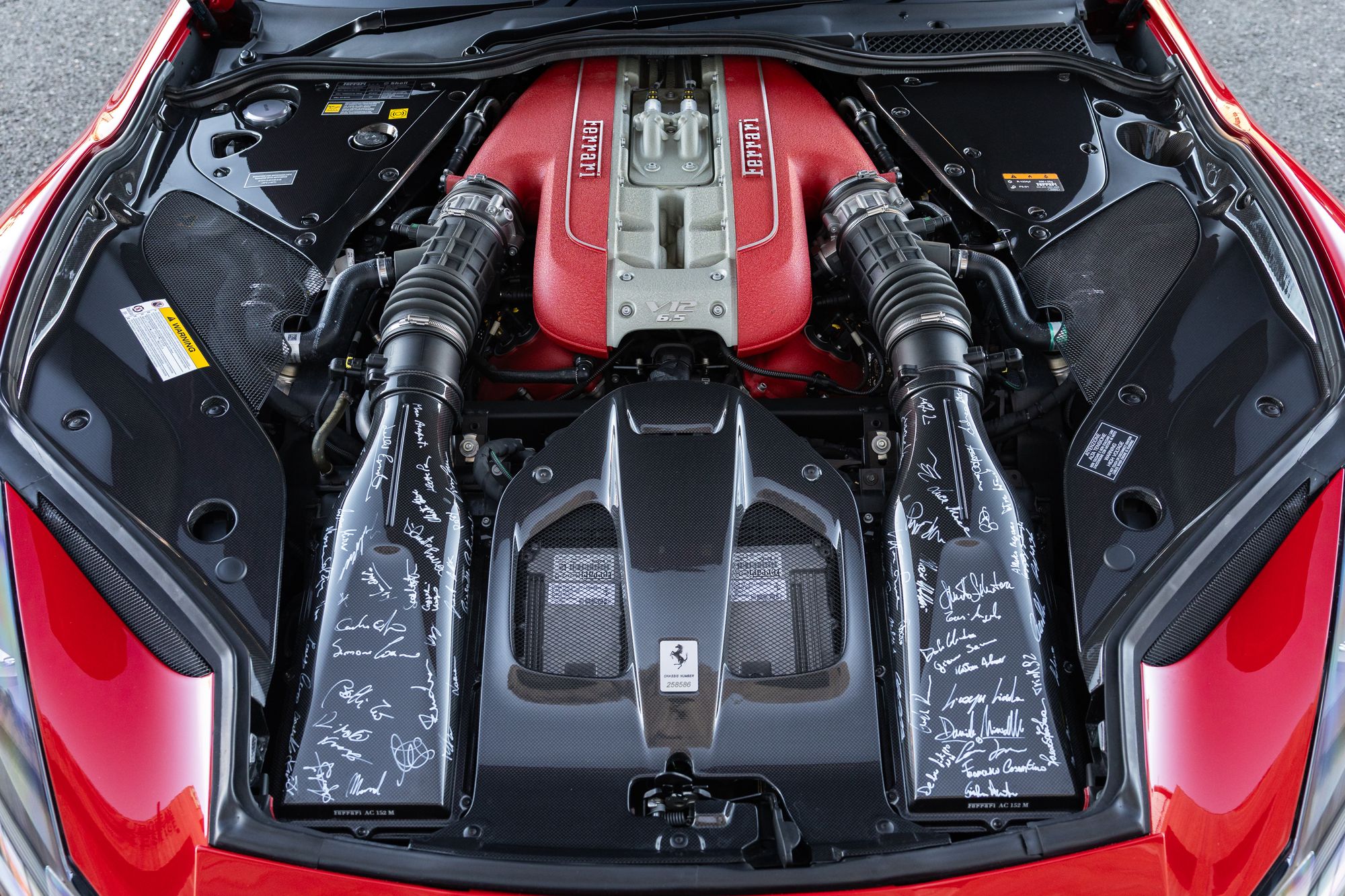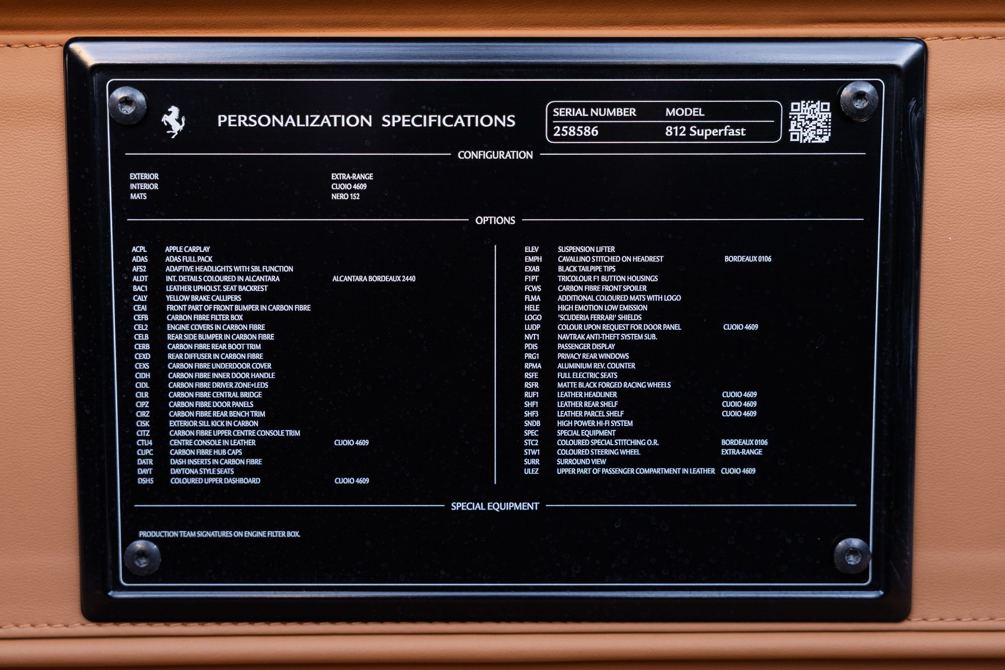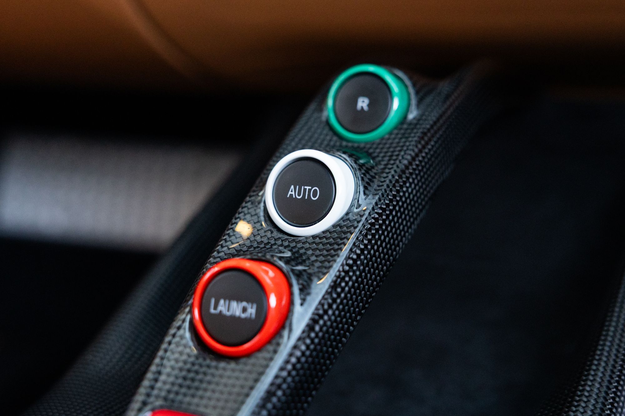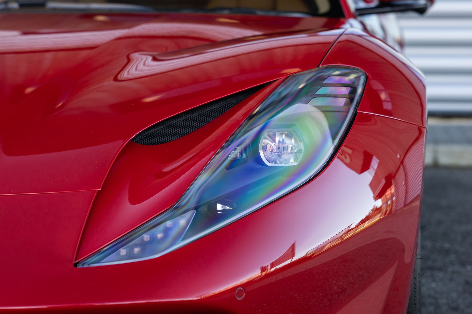 Key Points: Topaz Paint Protection Film (PPF) Applied To Whole Car, Production Team Signatures on Carbon Fibre Engine Filter Box, Rosso Berlinetta Exterior Paint.