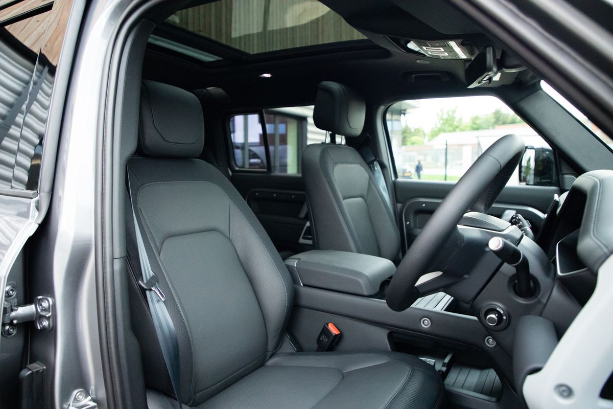 The Defender offers a more refined and comfortable interior than the previous generation. It features premium materials, modern technology interfaces, and improved ergonomics.