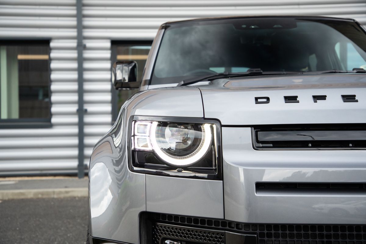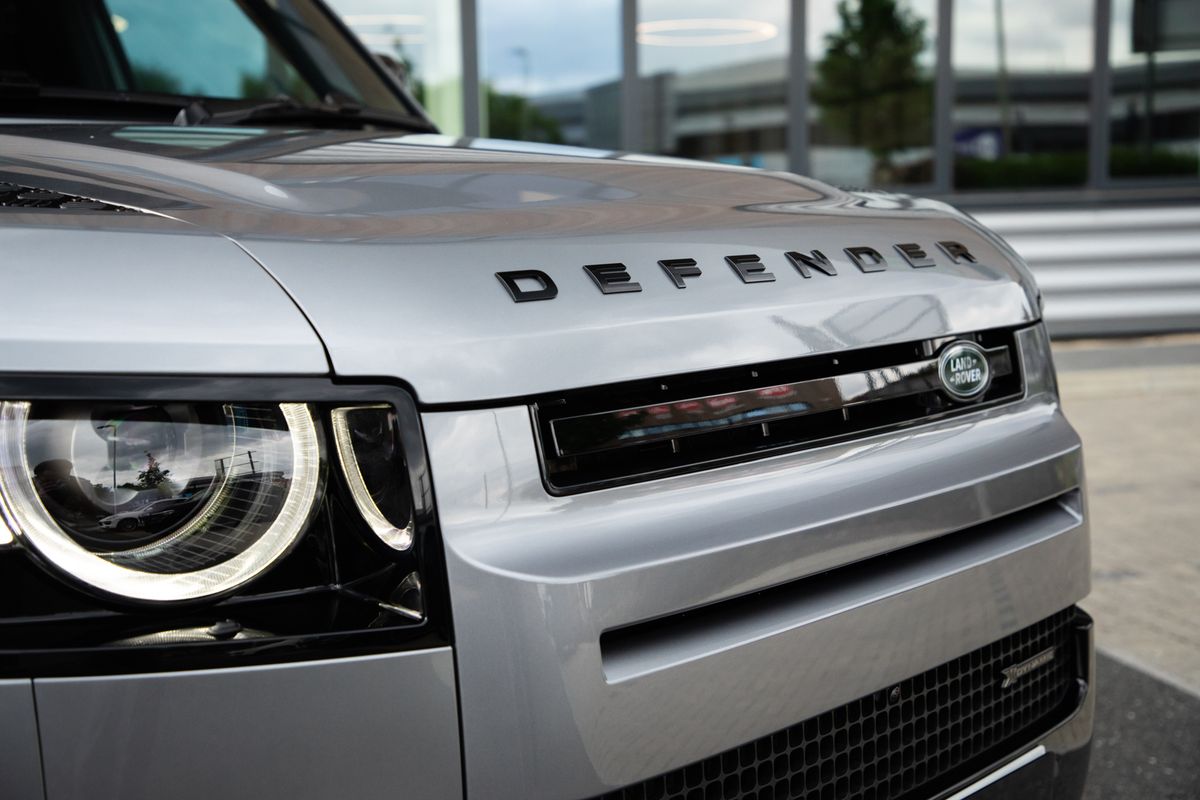 The new Defender 110 features a modern and boxy design that pays homage to the classic Defender while incorporating contemporary styling elements. It has a more angular and aggressive appearance compared to the previous generation.