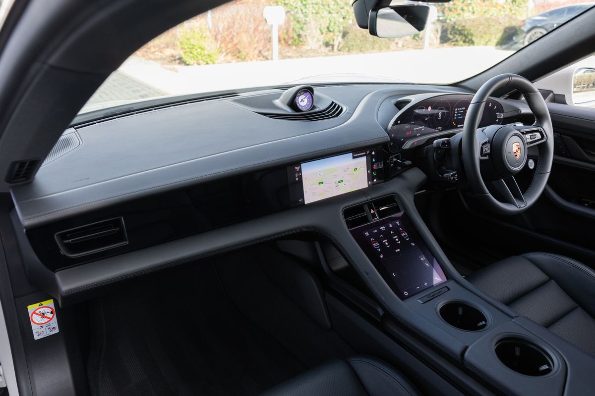 The Taycan uses a new battery-electric all-wheel-drive powertrain with a permanent-magnet synchronous motor on each axle. At the front, power is sent to the wheels through a single-speed gearbox, and at the rear, through a two-speed transmission and a limited slip differential. The gearbox has a short planetary first gear providing maximum acceleration, and a long-ratio second gear delivering top speed and efficiency. Power is stored via either a 79.12kWh or 93kWh lithium-ion battery pack that doubles as a structural chassis component, and keeps the centre of gravity low. To increase rear-seat legroom, recesses have been incorporated in the battery pack.
