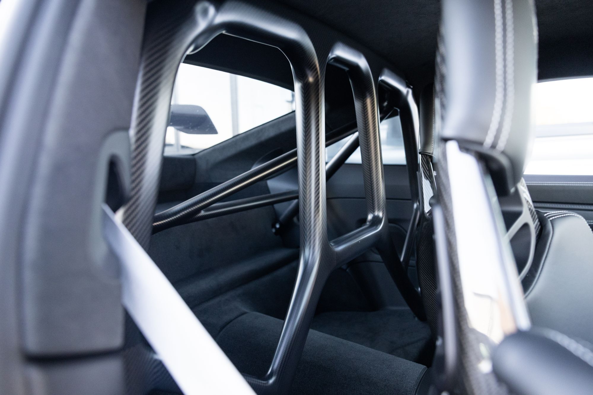 The optional Clubsport and Weissach packages ensure that the 911 GT3 RS is prepared for use at motorsport events. The Clubsport Package is free of charge and includes a bolted-on steel rear roll cage, a six-point seat belt for the driver, a pre-fitted battery main switch and a portable fire extinguisher with 2 kg of extinguishing media. The shoulder straps can be used with or without the HANS safety system (head and neck support).